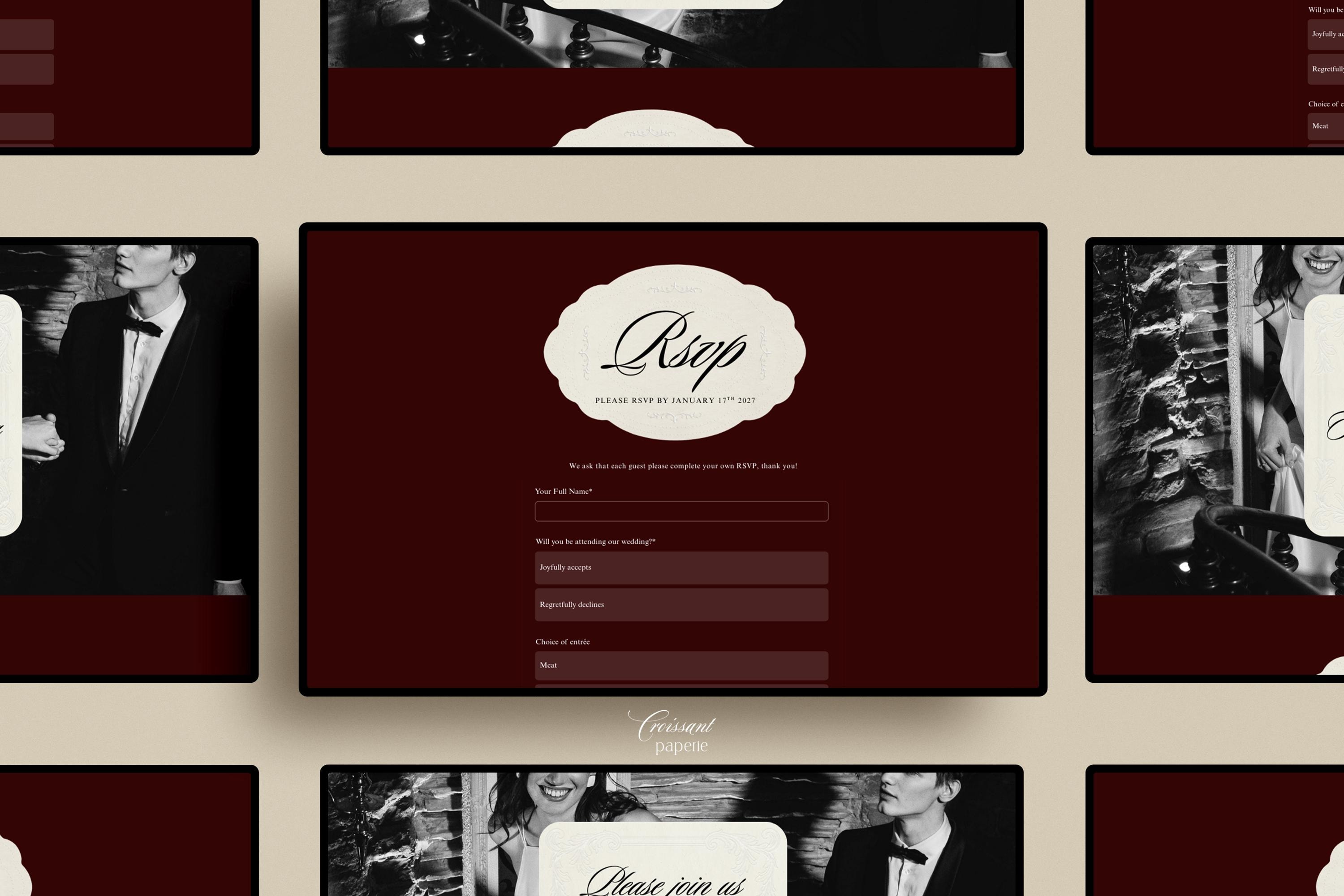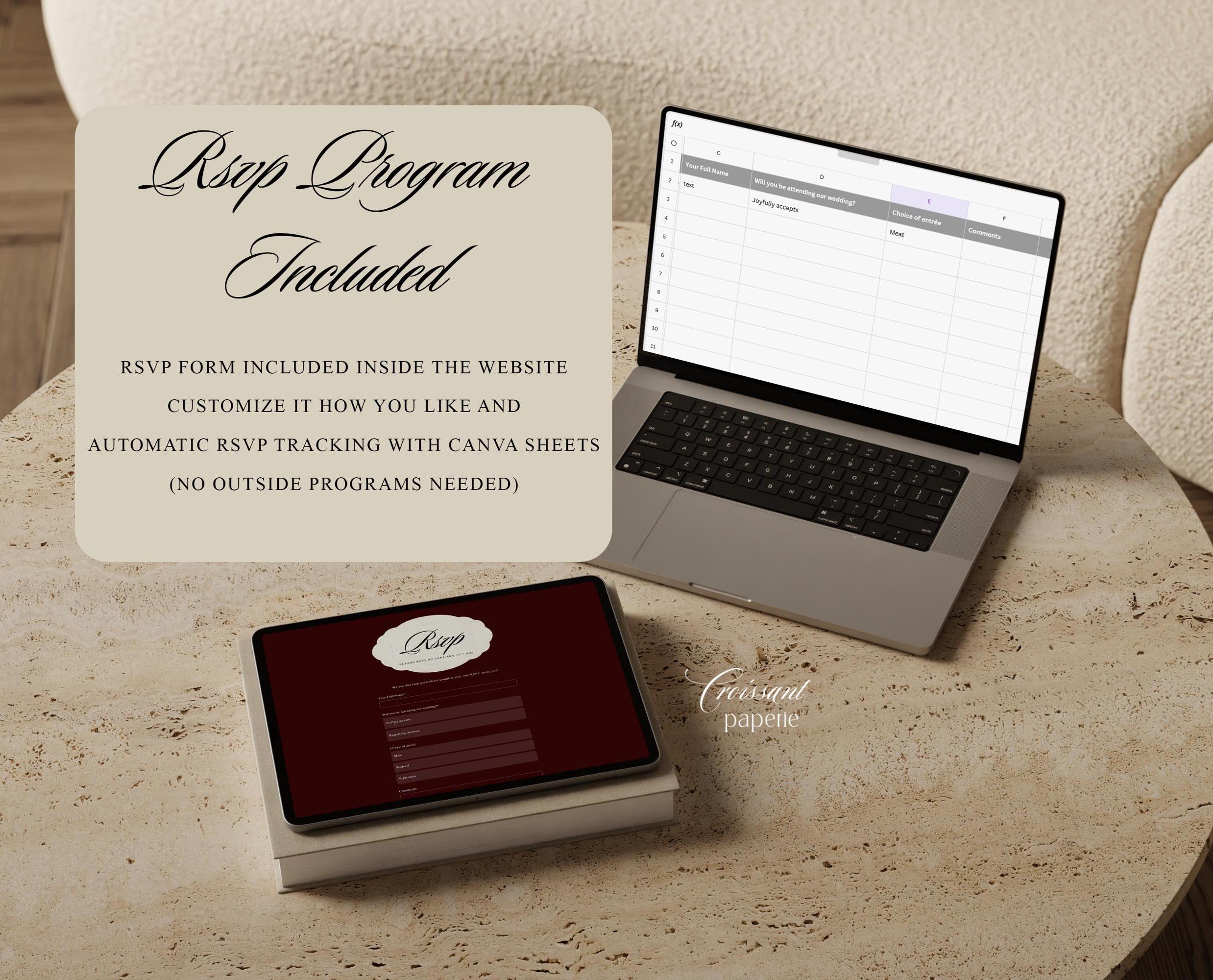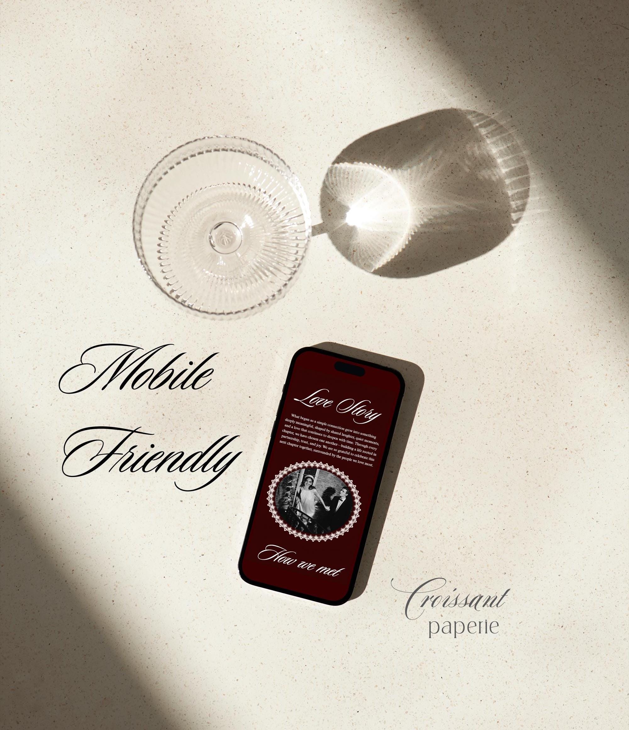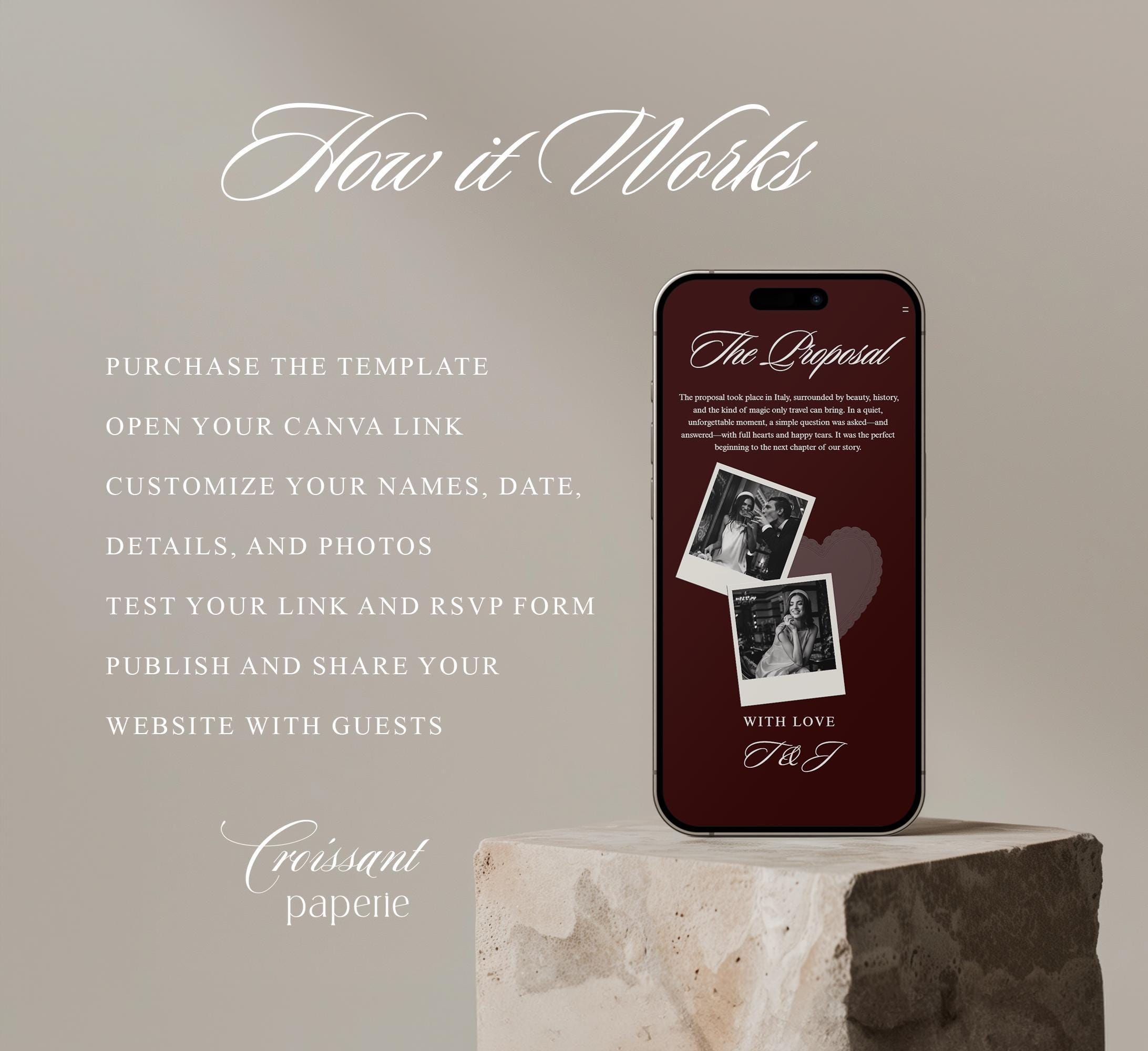 Wedding Website Template with RSVP, Burgundy & Cream Custom Editable Canva Design, Old Money Classic Digital Invitation (Digital Download)