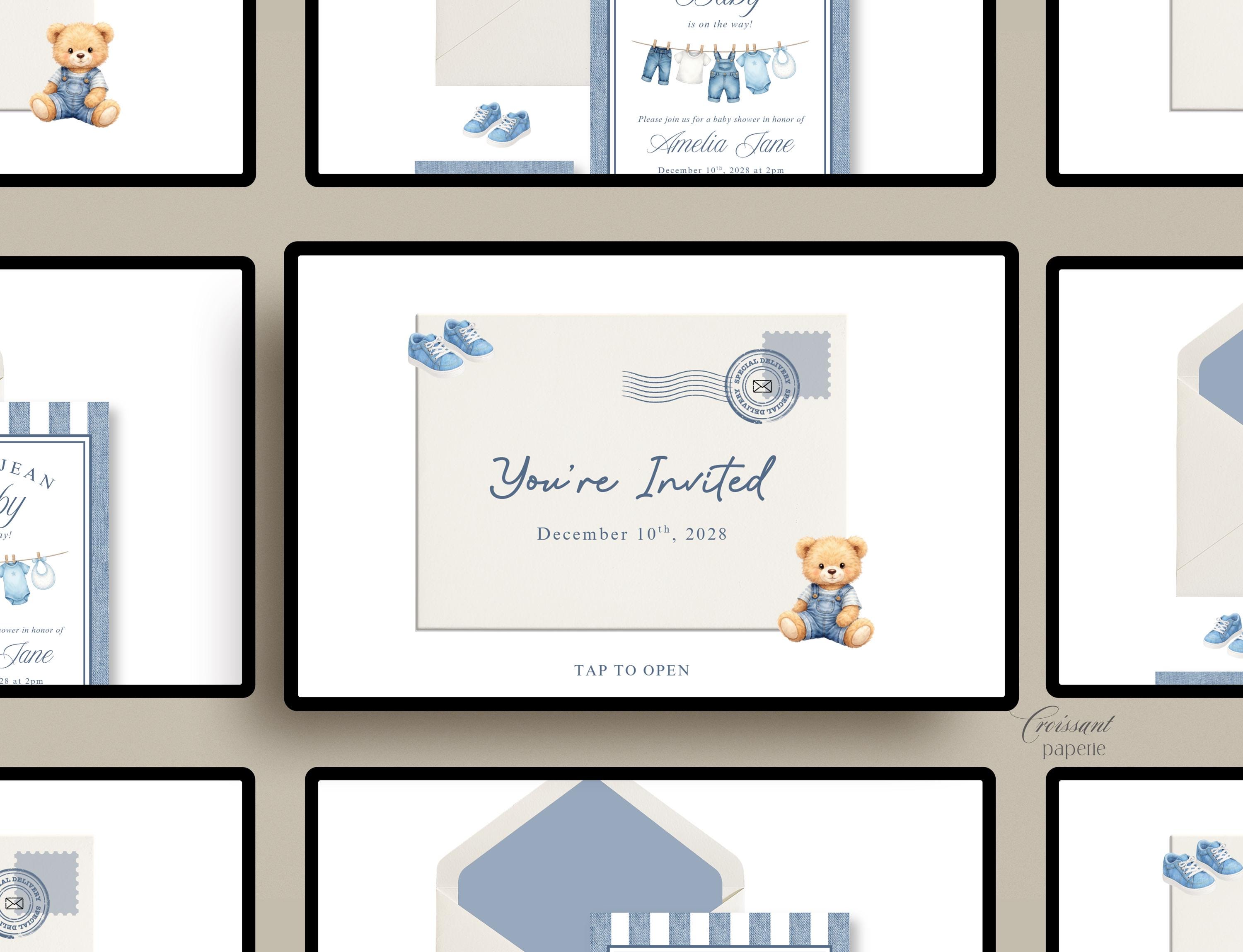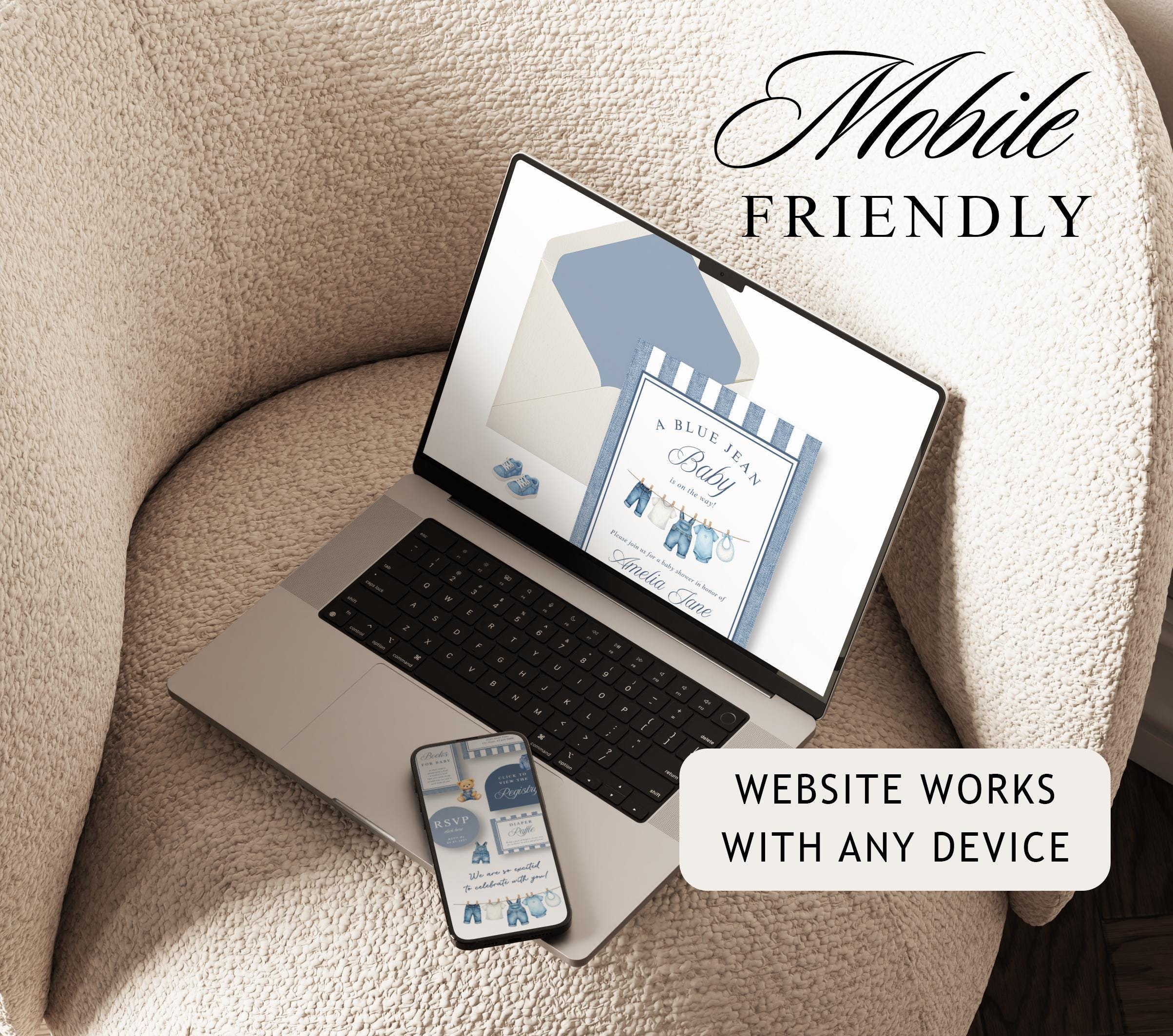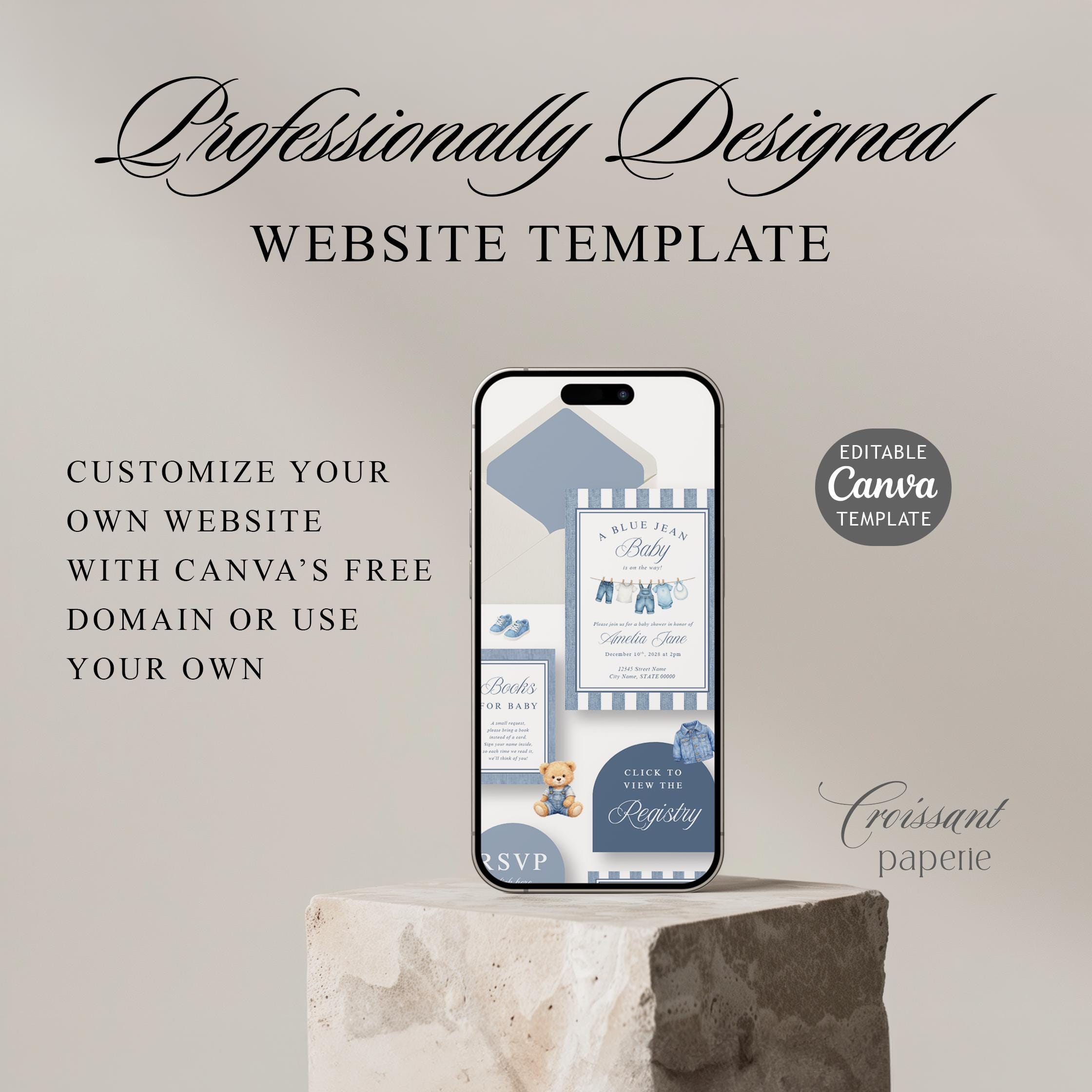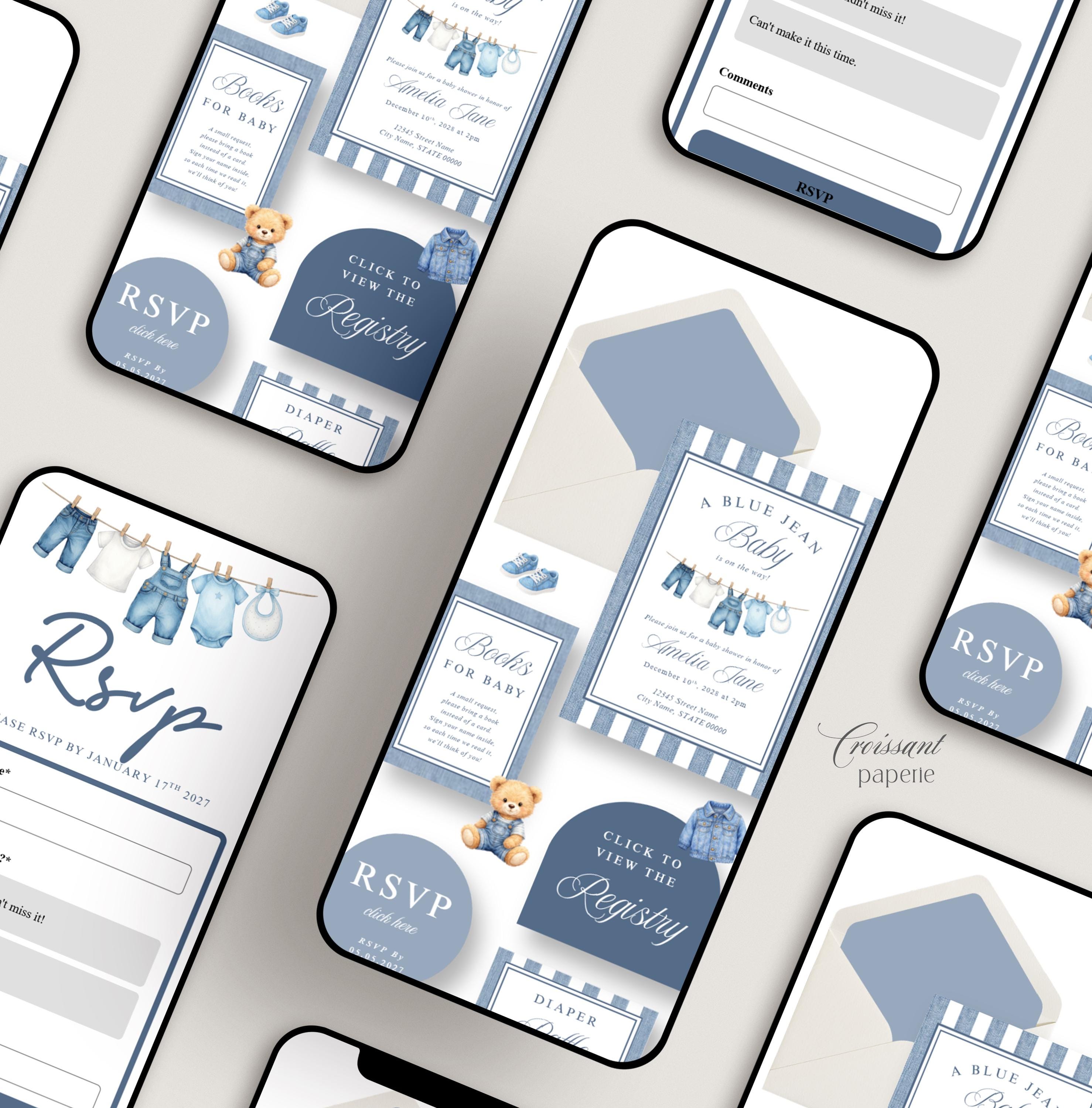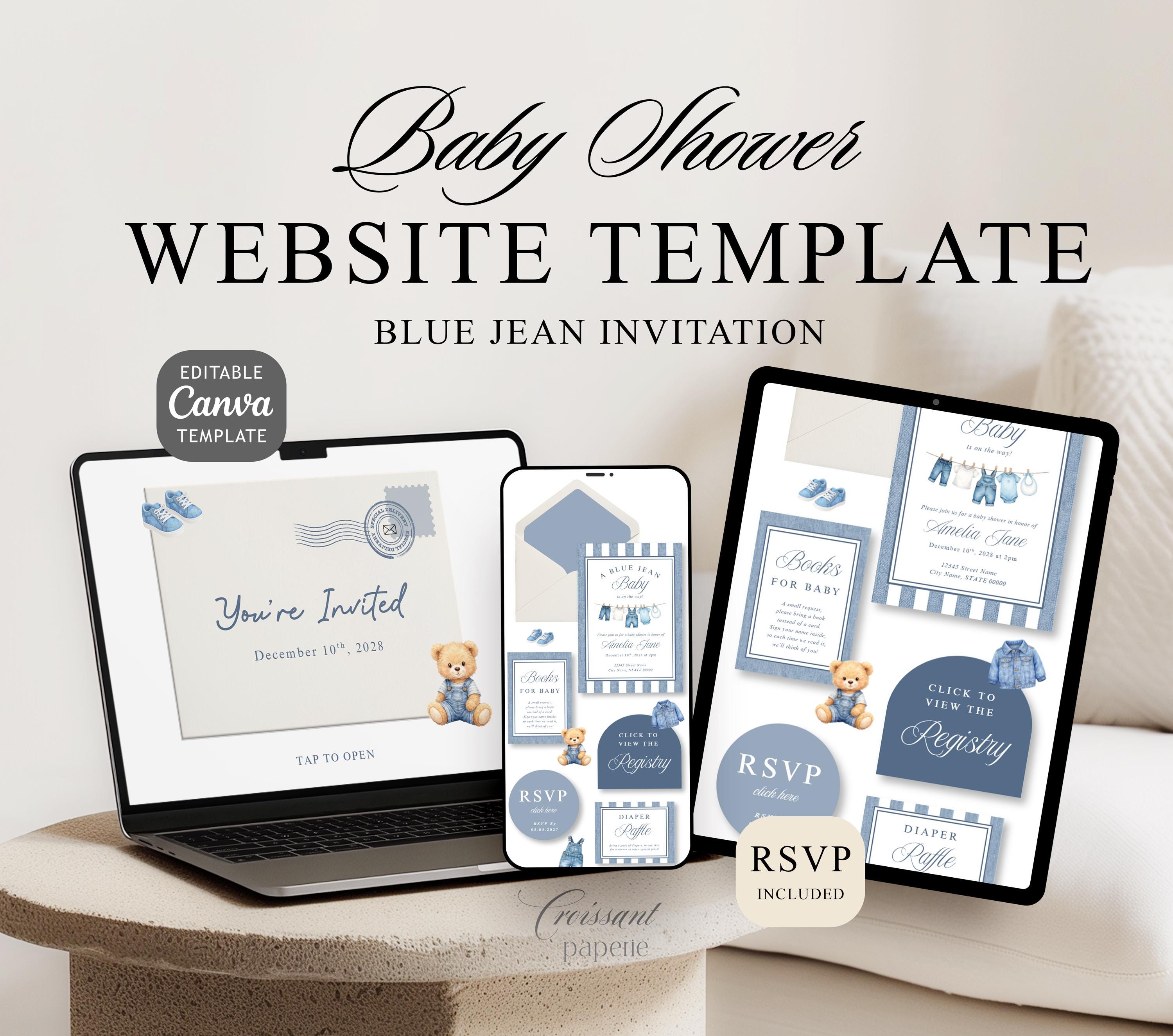 Blue Jean Baby Shower Website Template with RSVP, Editable Canva Website, Denim Western Digital Invitation Bear Digital Website Invite,