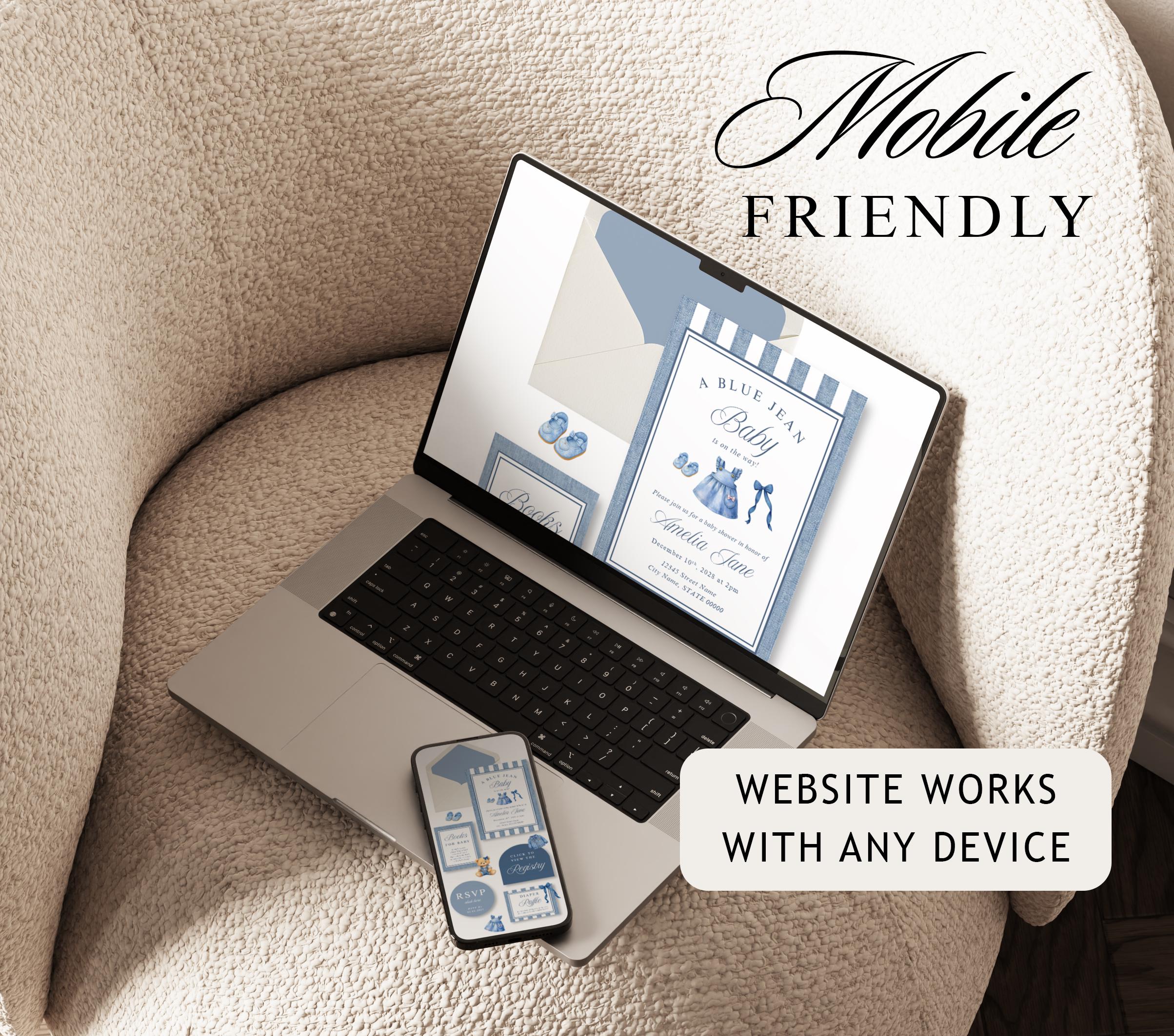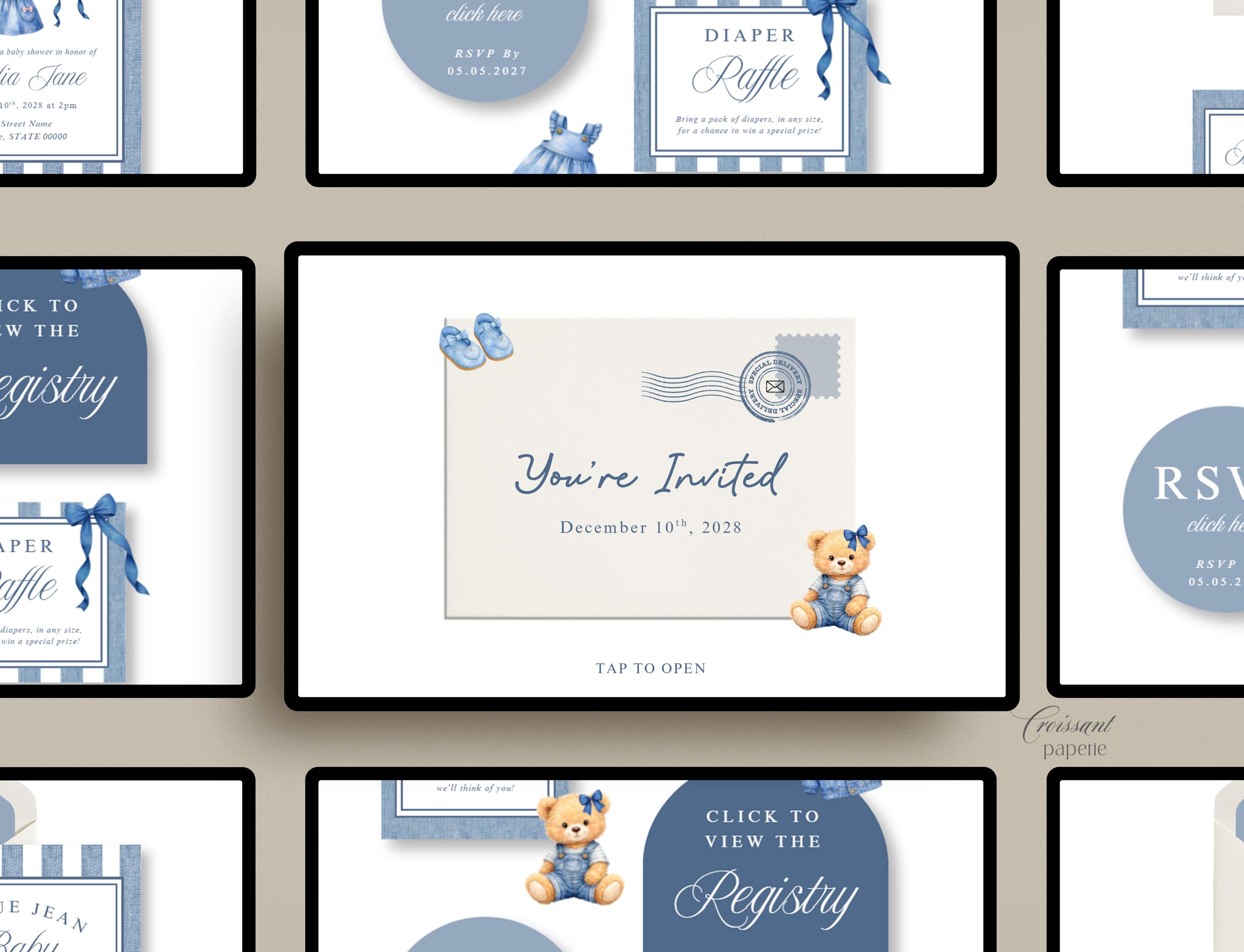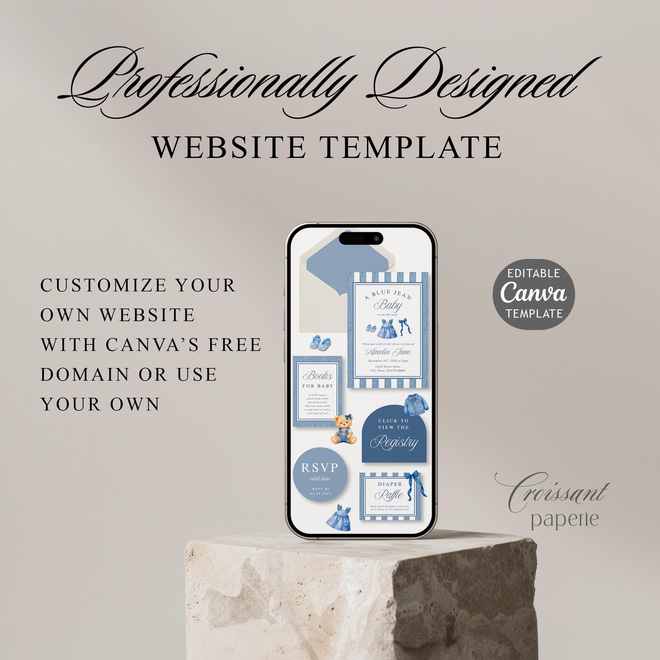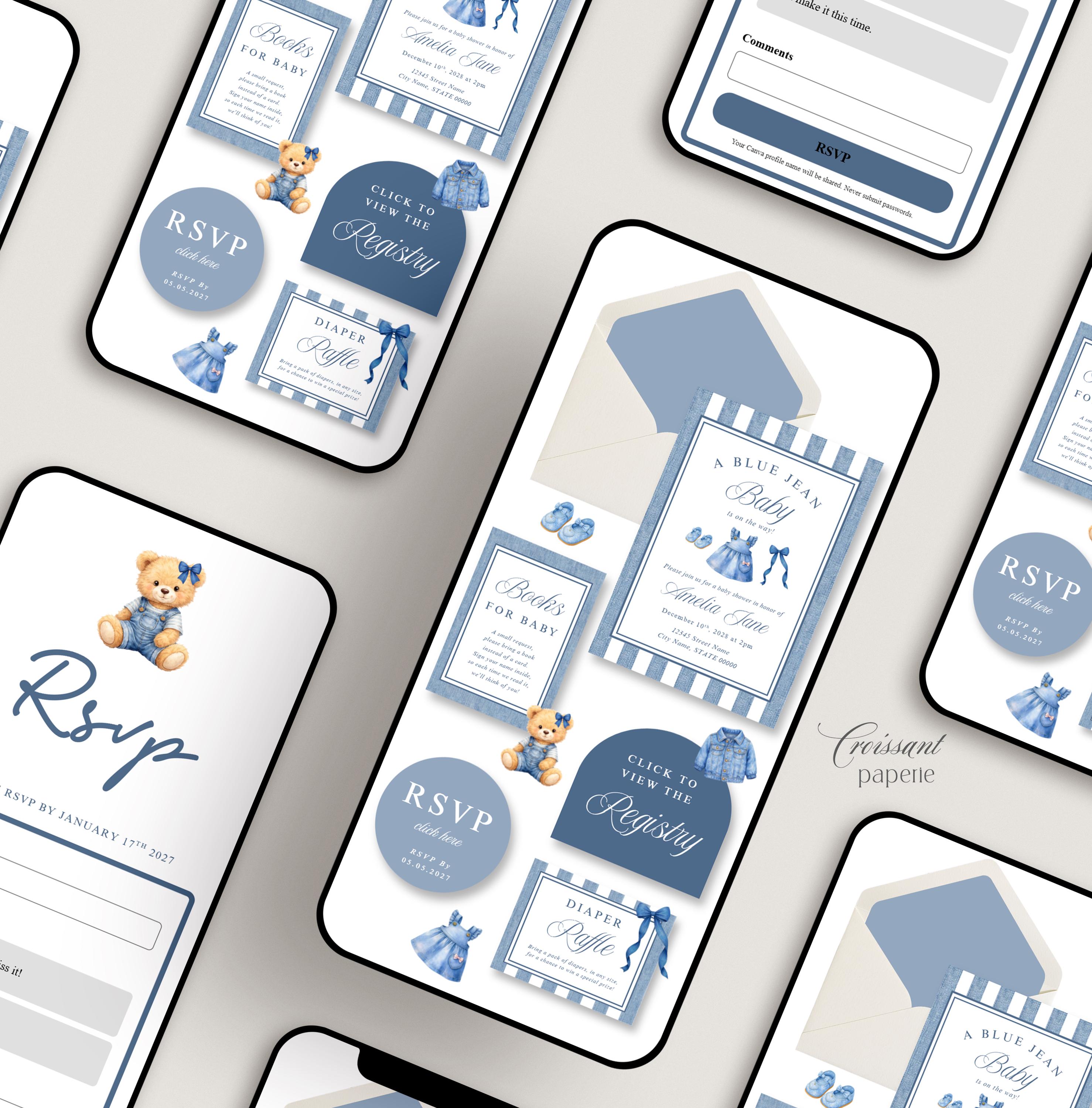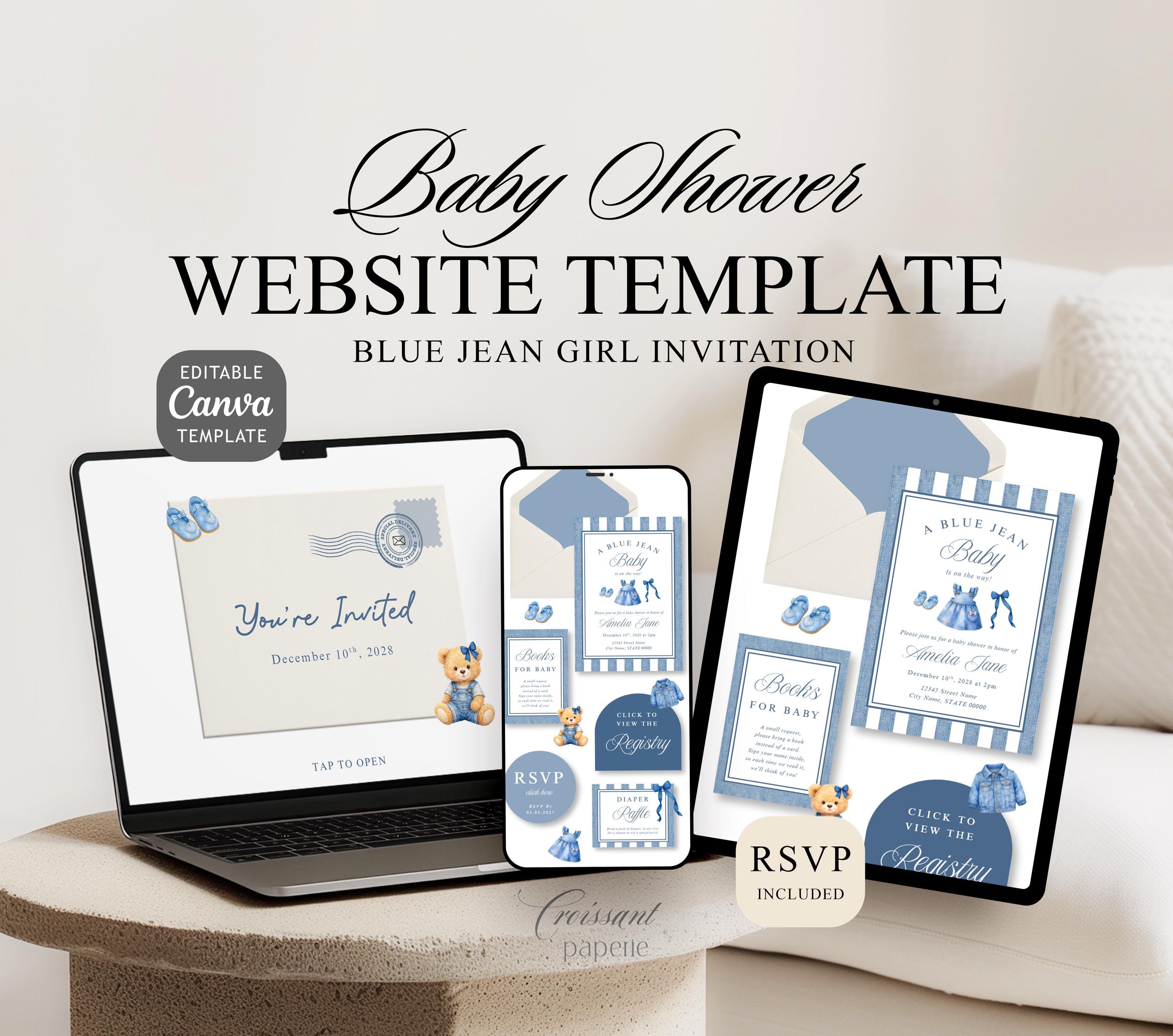 Blue Jean Baby Shower Website Template with RSVP, Editable Canva Website, Girl Denim Baby Shower Digital Invitation Western Baby Shower Girl