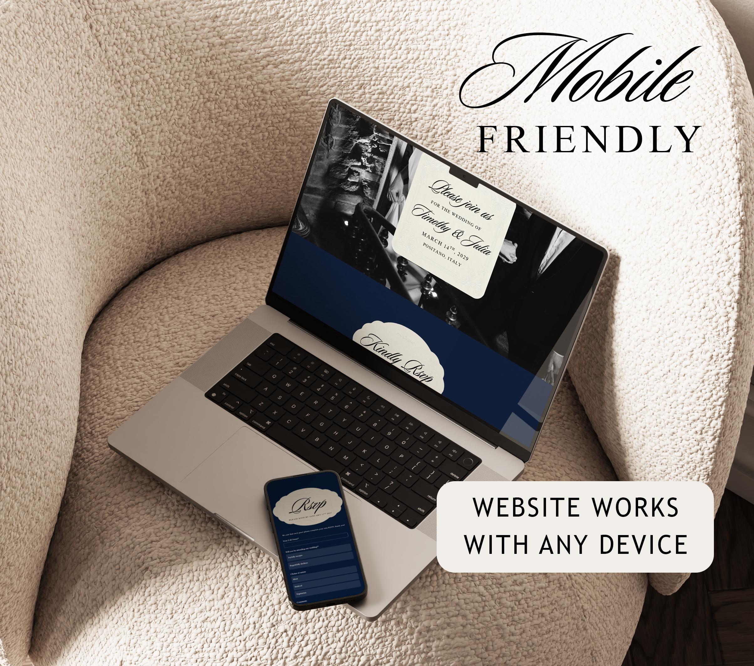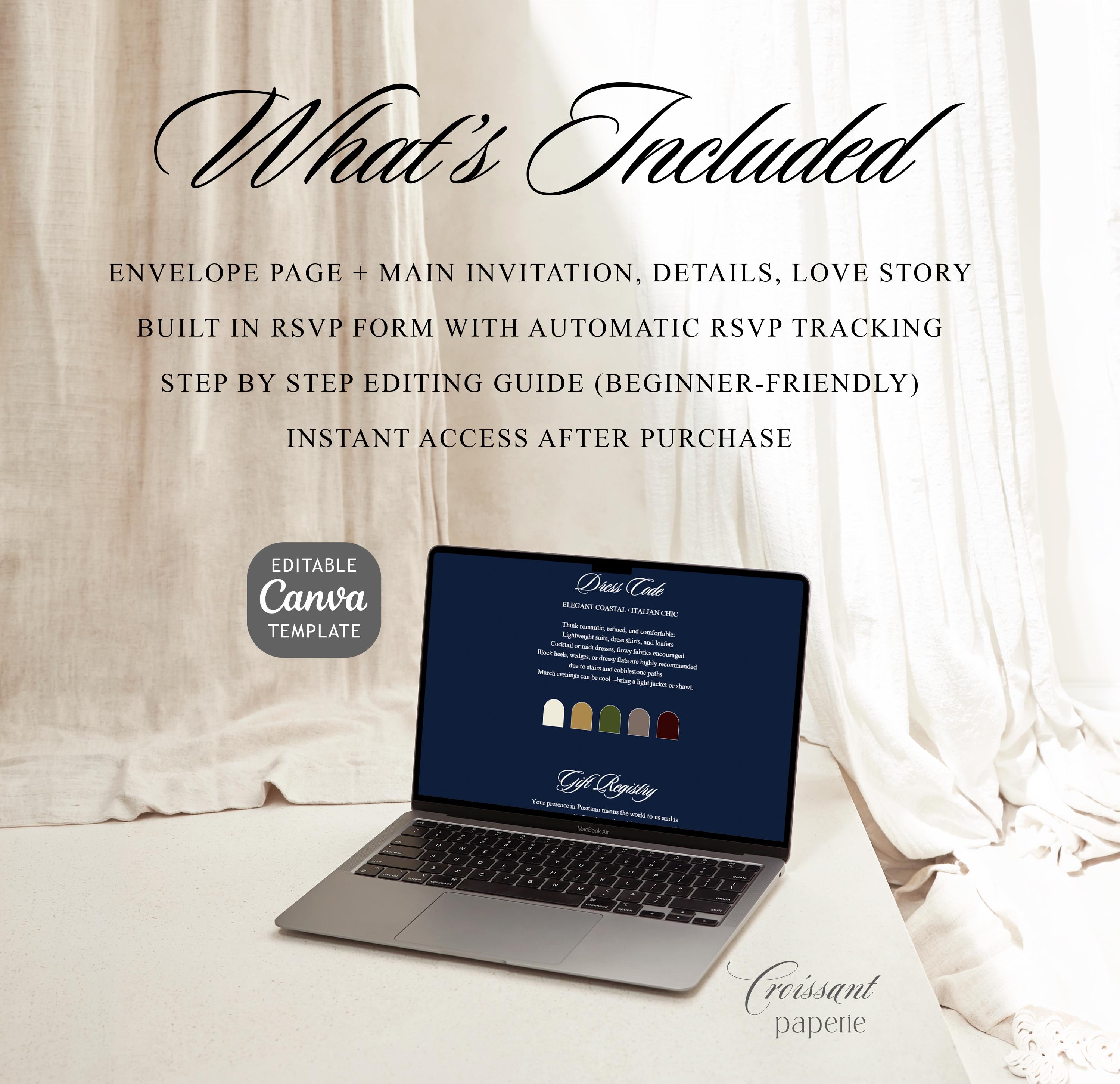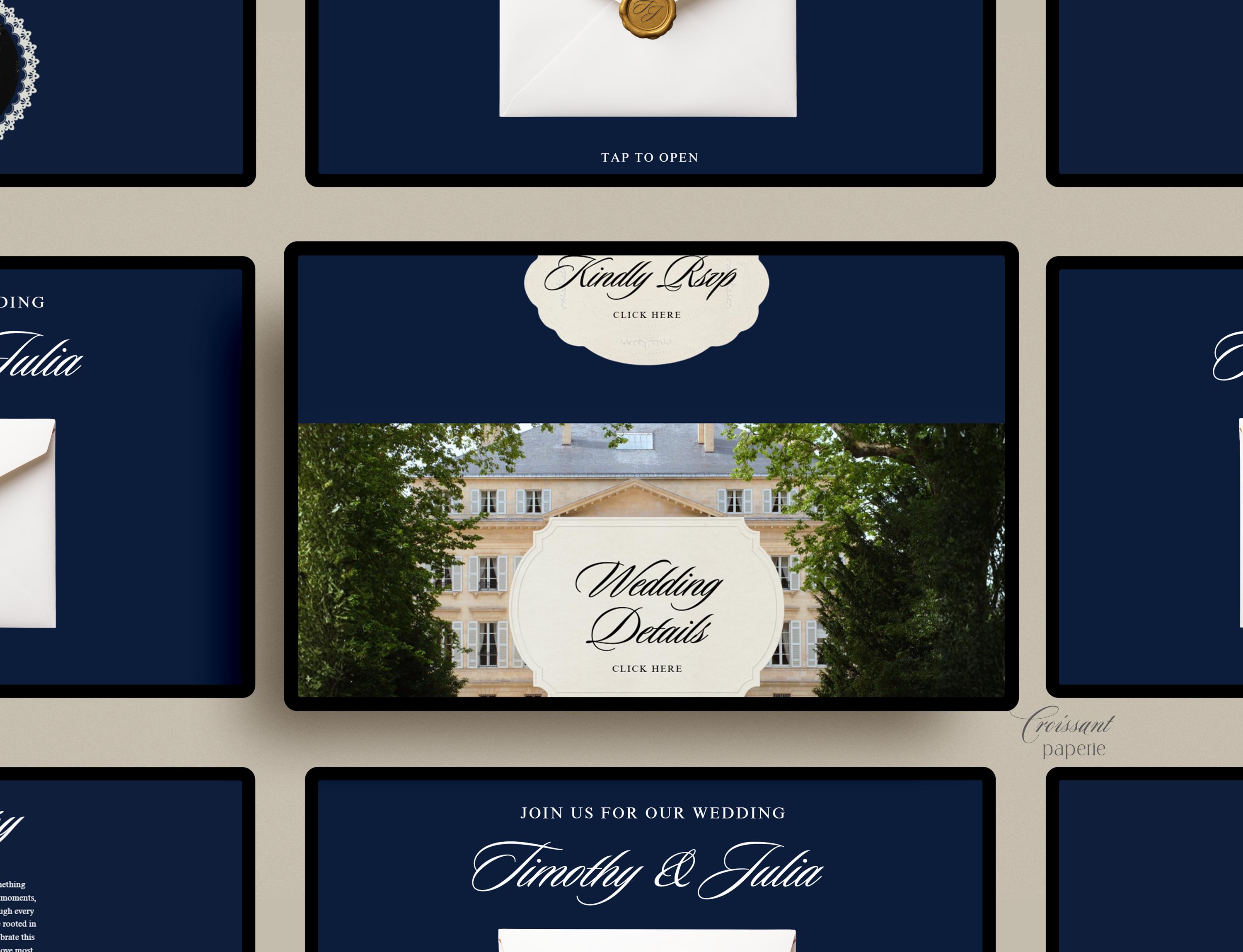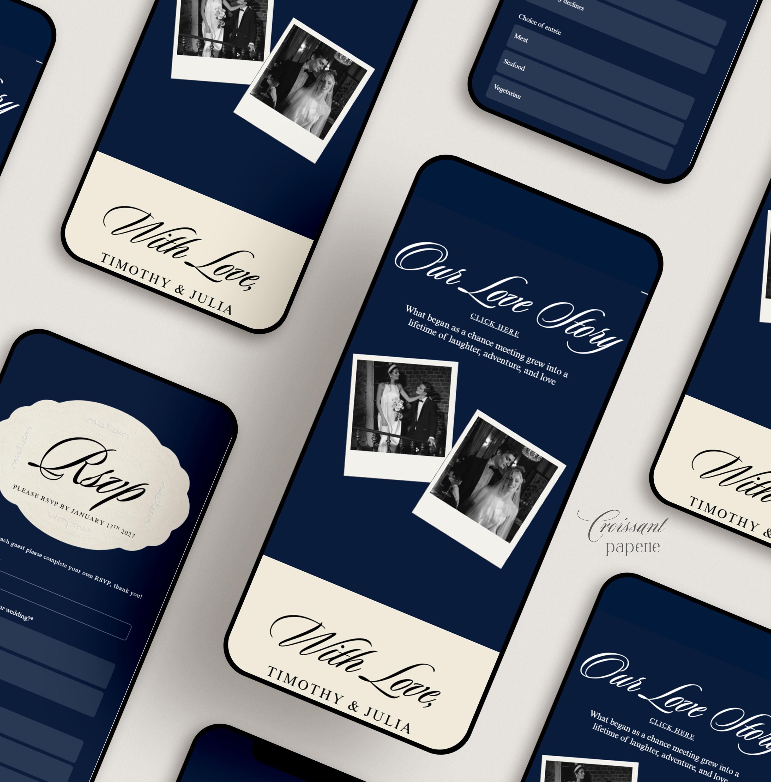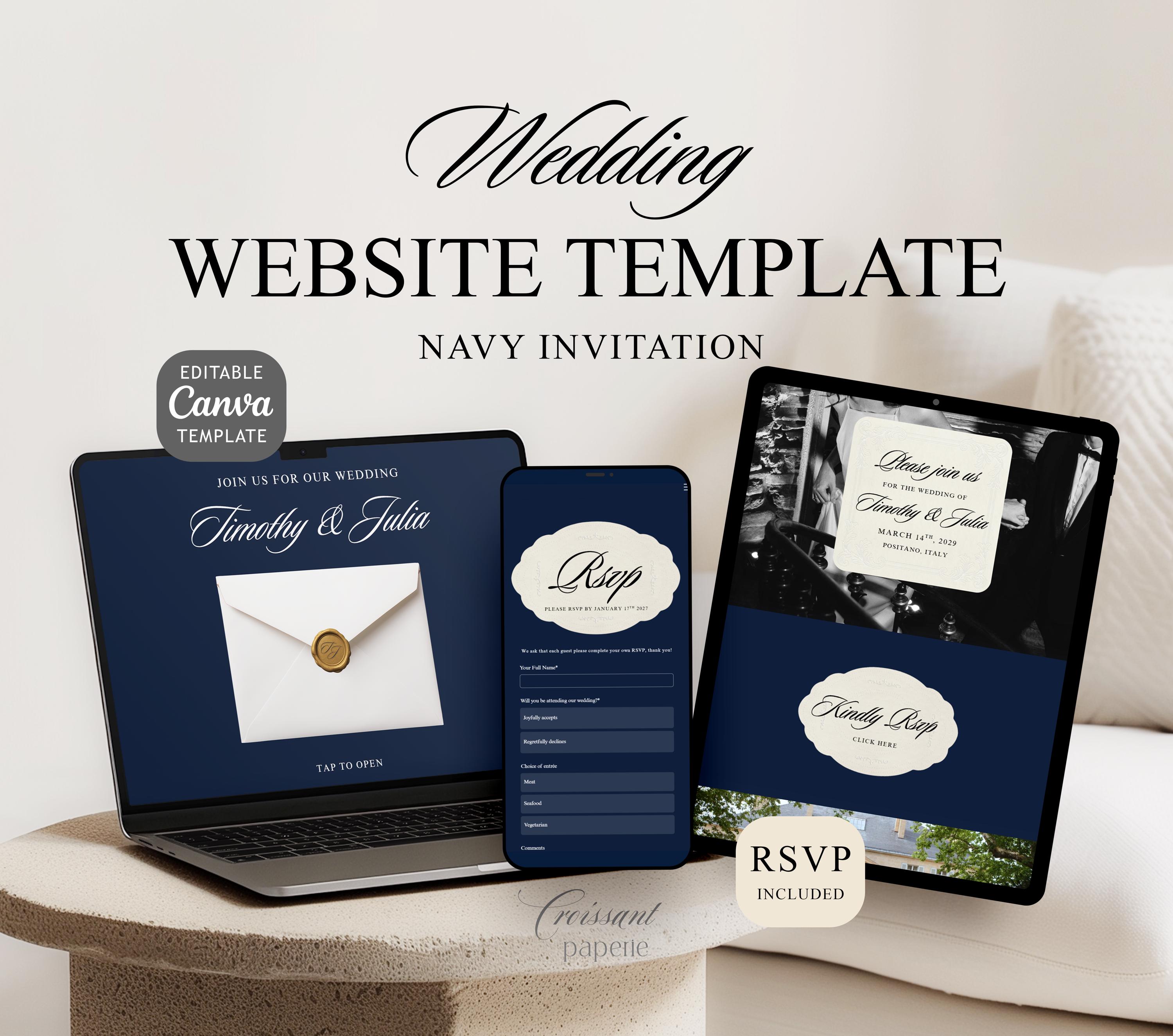 Wedding Website Template with RSVP, Navy & Ivory Editable Canva Wedding Website, Old Money Classic Digital Invitation (Digital Download)