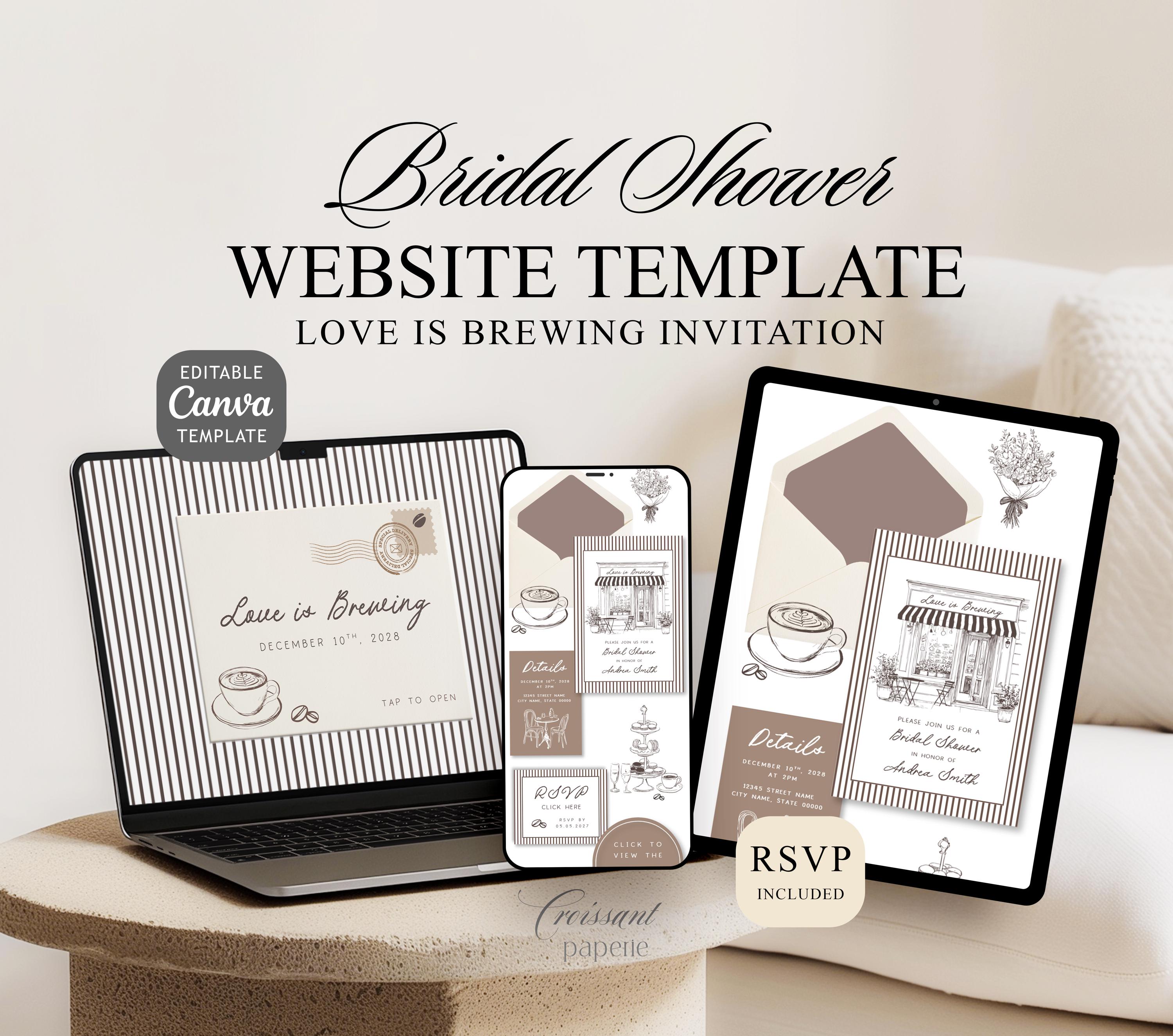 Love is Brewing Bridal Shower Website Template with RSVP, Editable Canva Website, Coffee Bridal Shower Digital Invitation Brewing Theme
