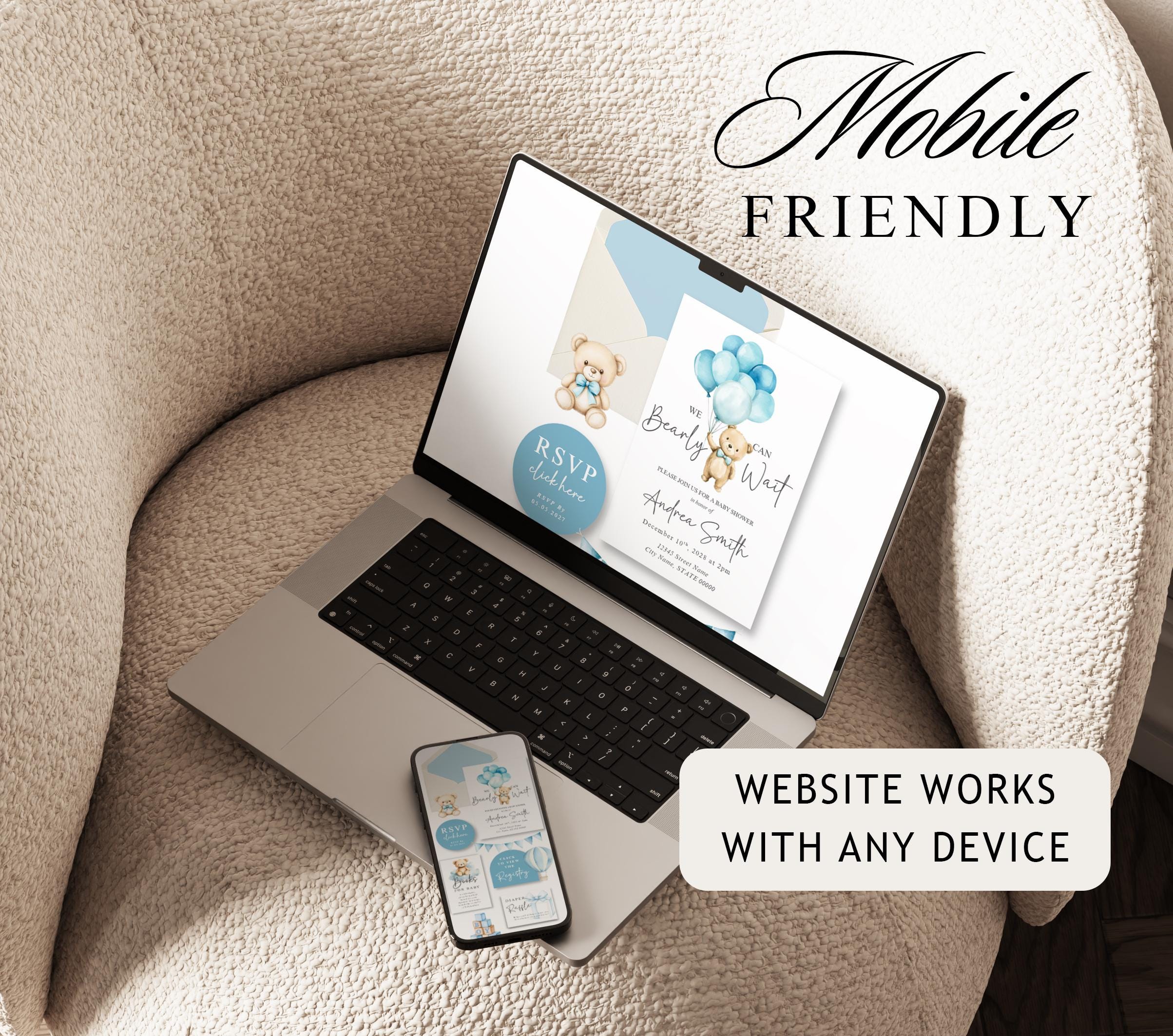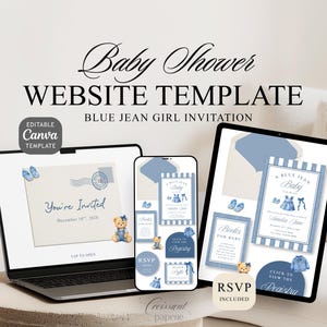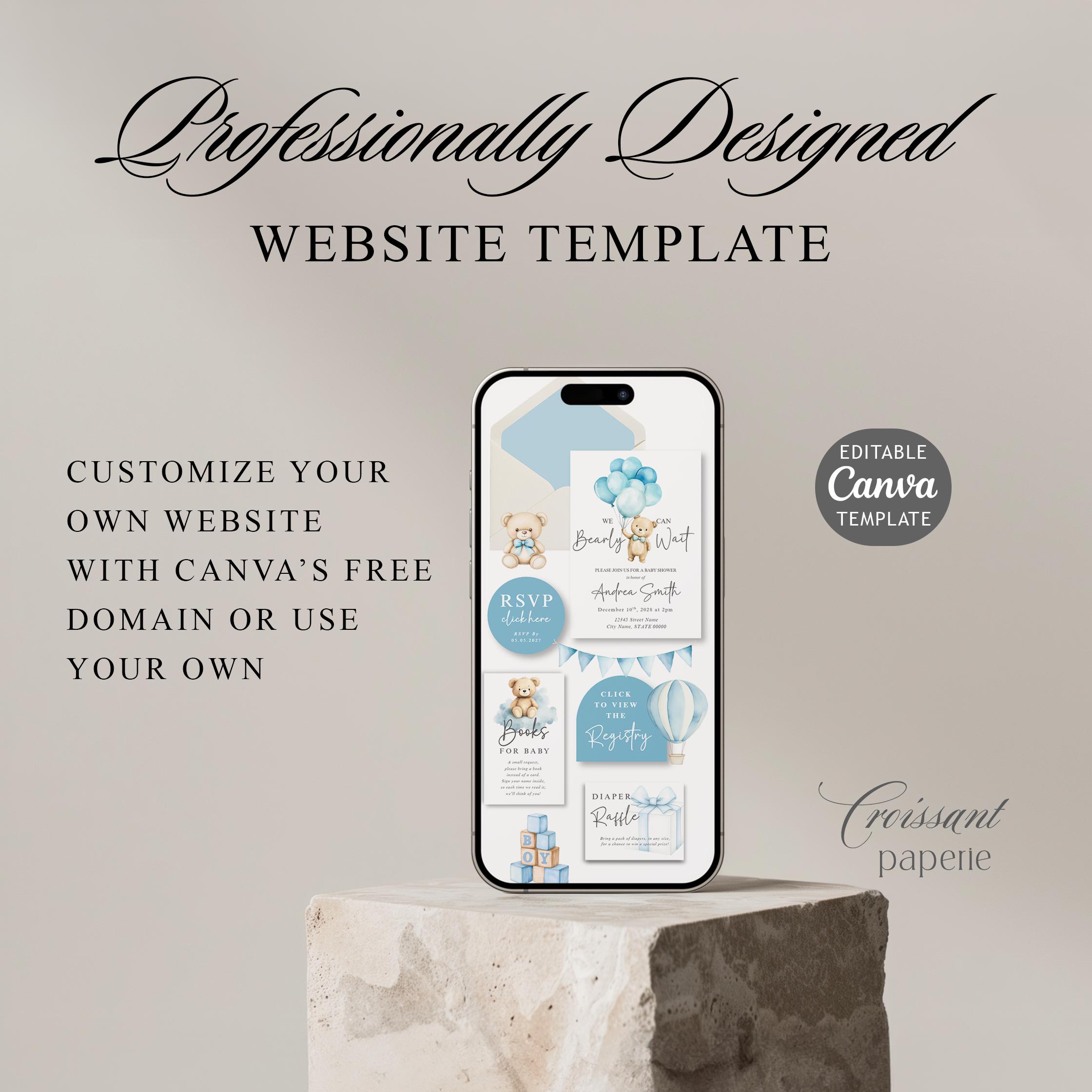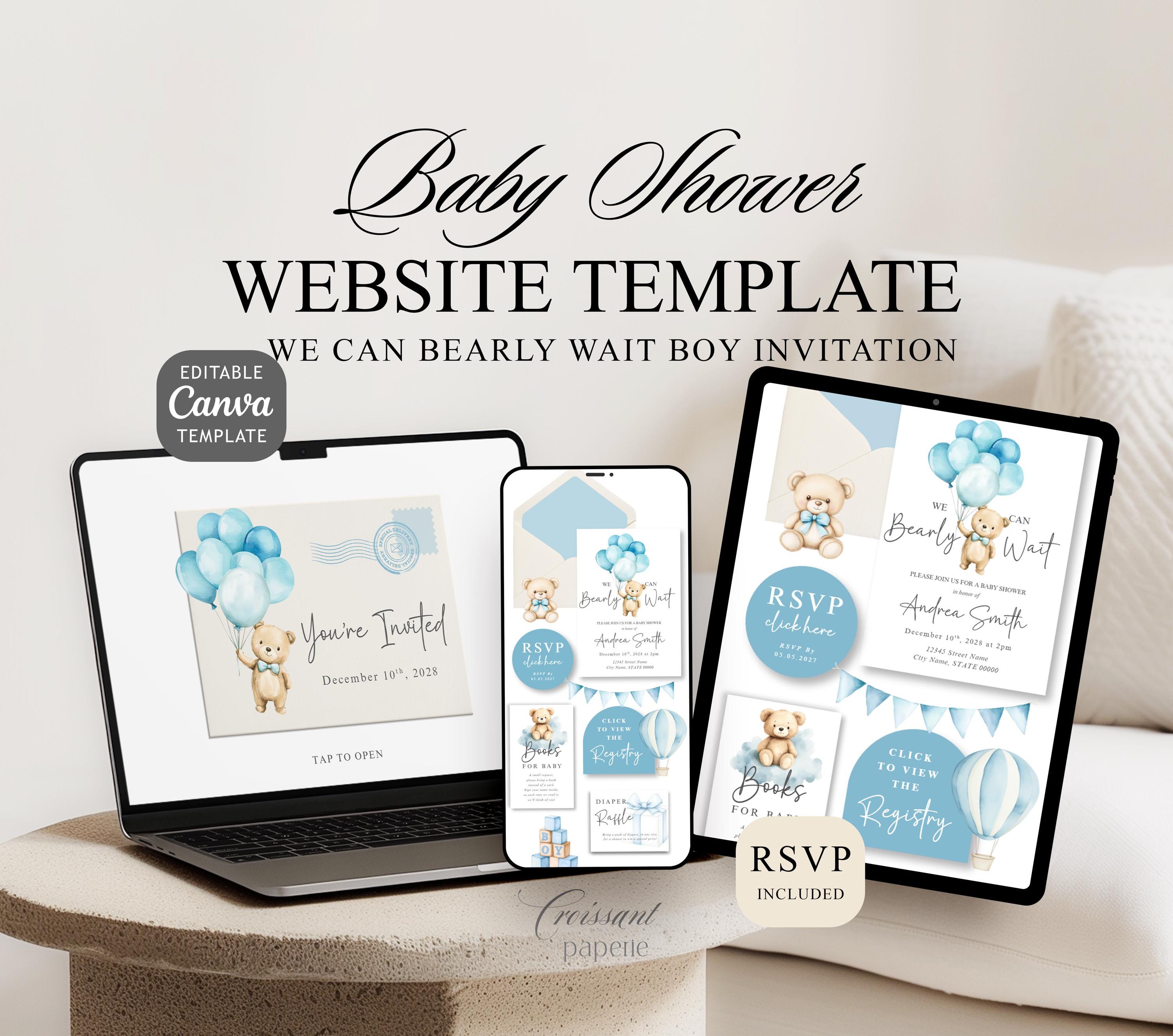 We Can Bearly Wait Baby Shower Invitation Website Template with RSVP, Editable Canva Website, Boy Blue Teddy Bear Invite, Digital Invitation