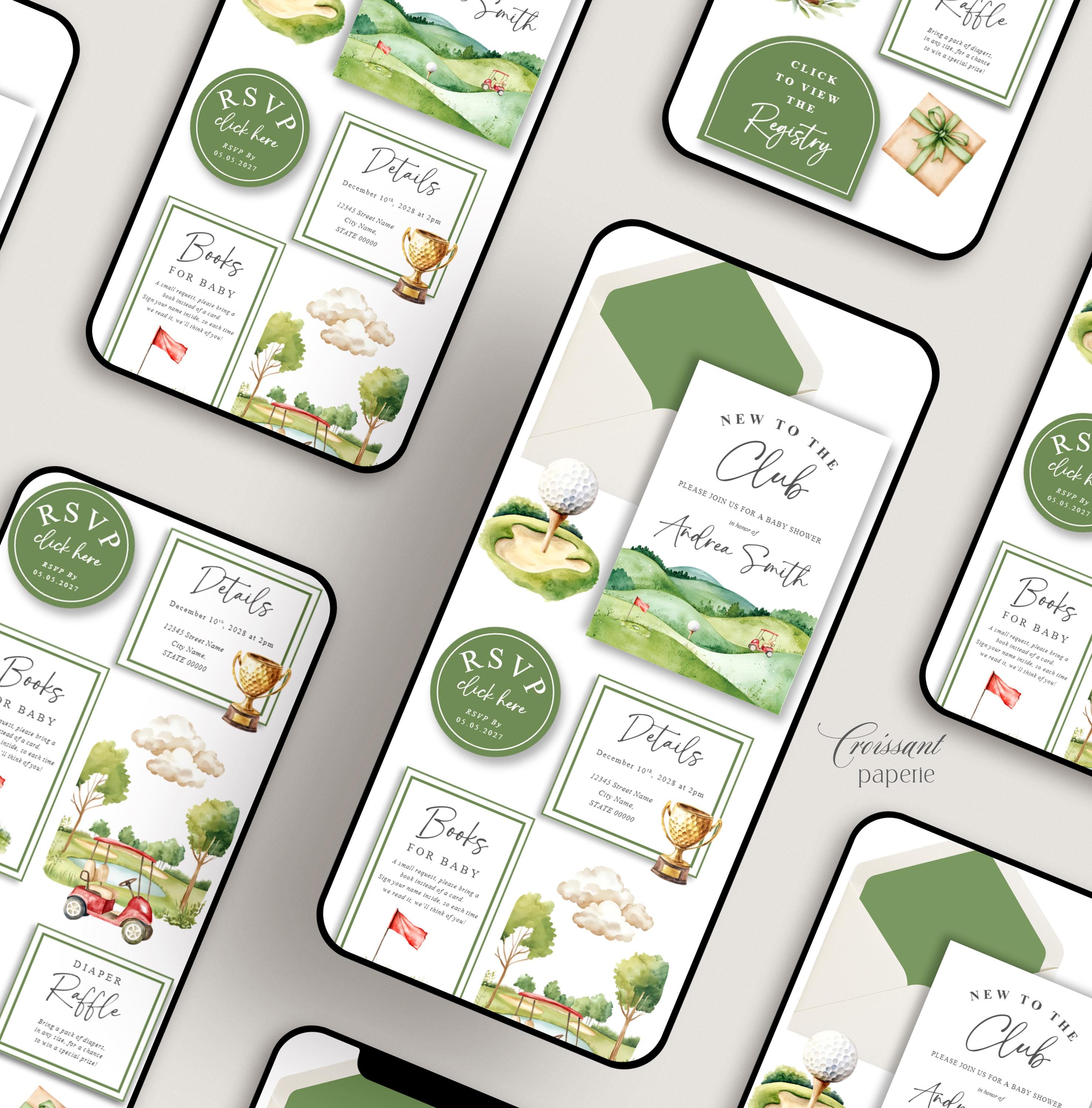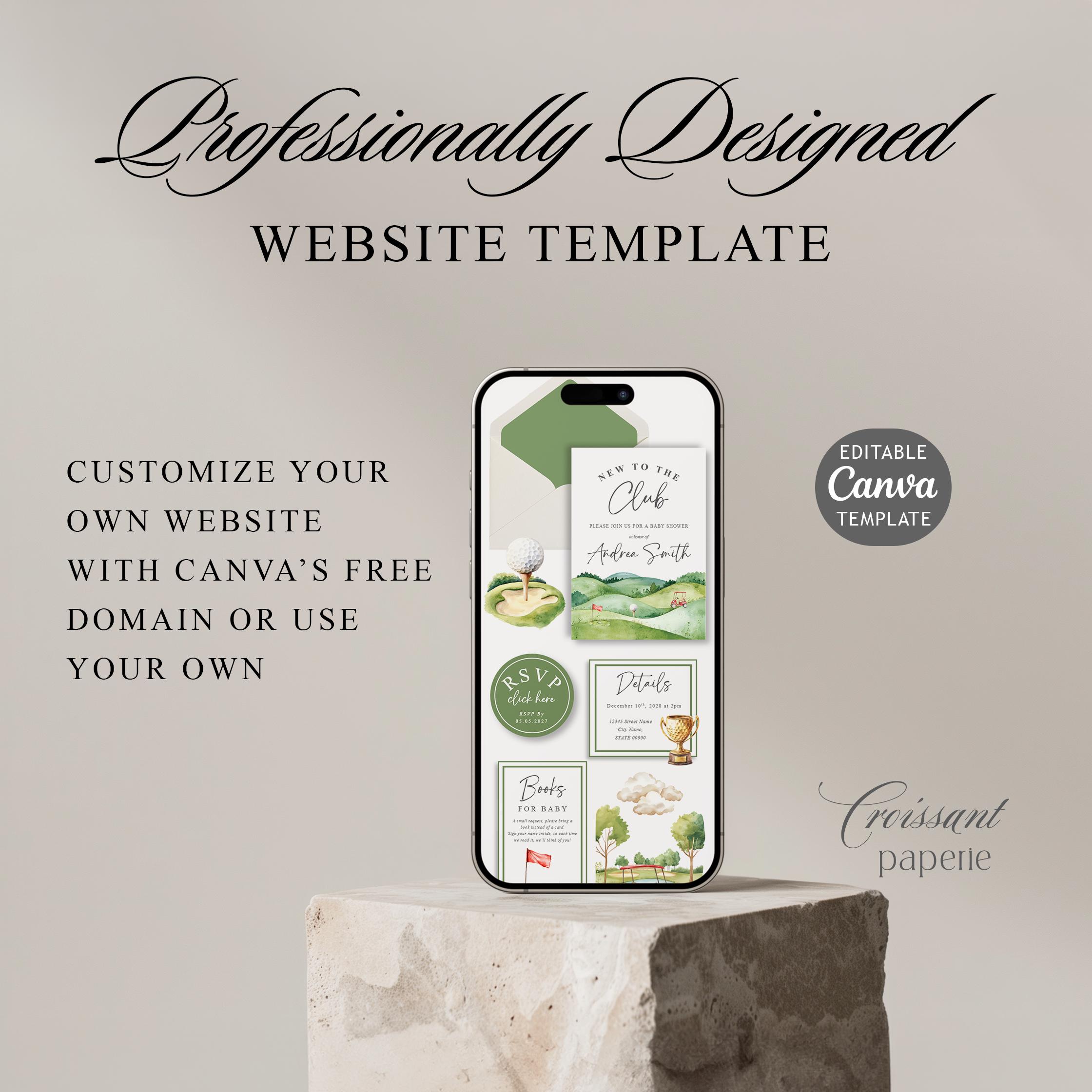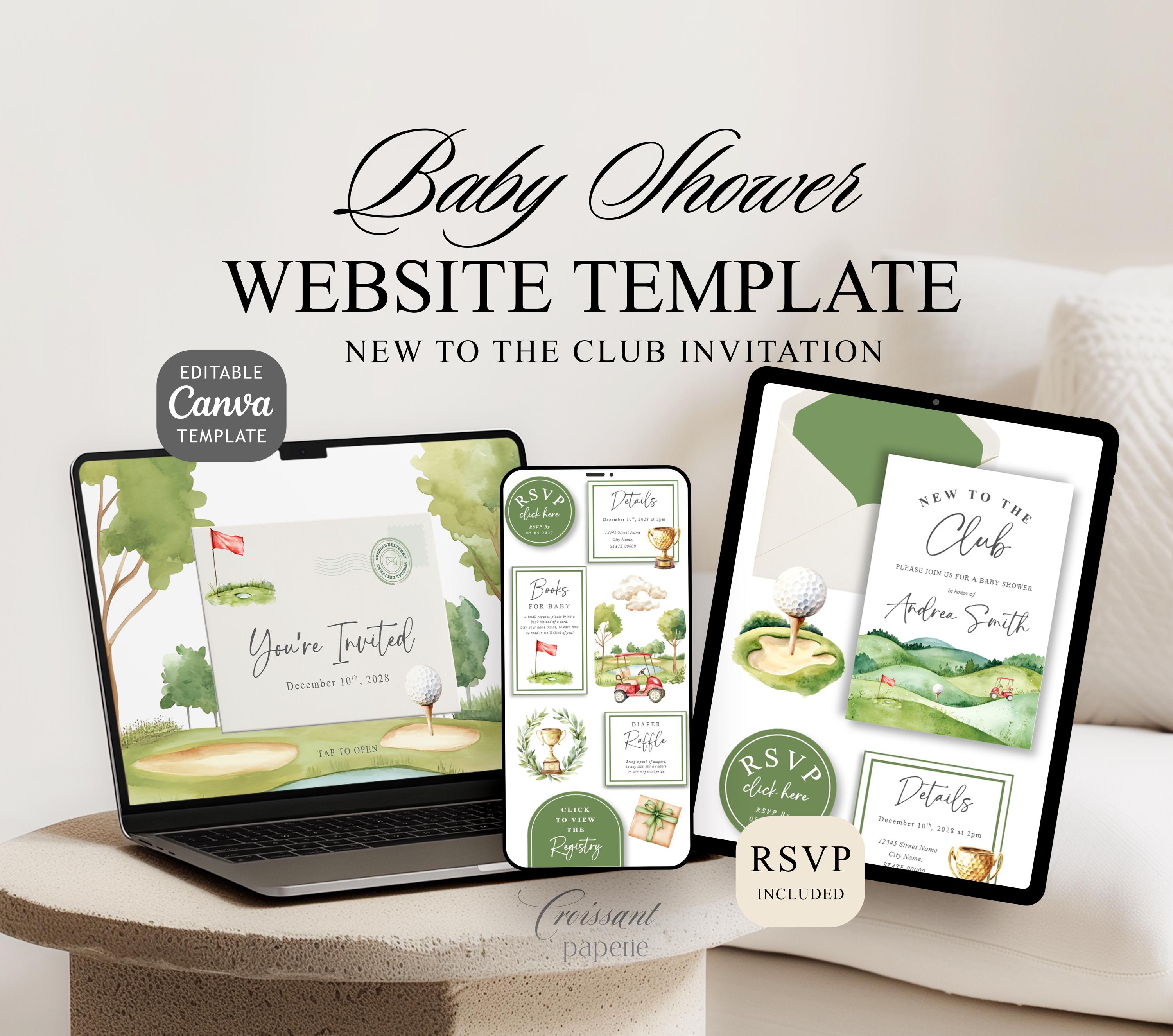 New to the Club Baby Shower Website Template with RSVP, Golfing Baby Shower, Editable Canva Website, Golf Baby Shower Digital Invitation