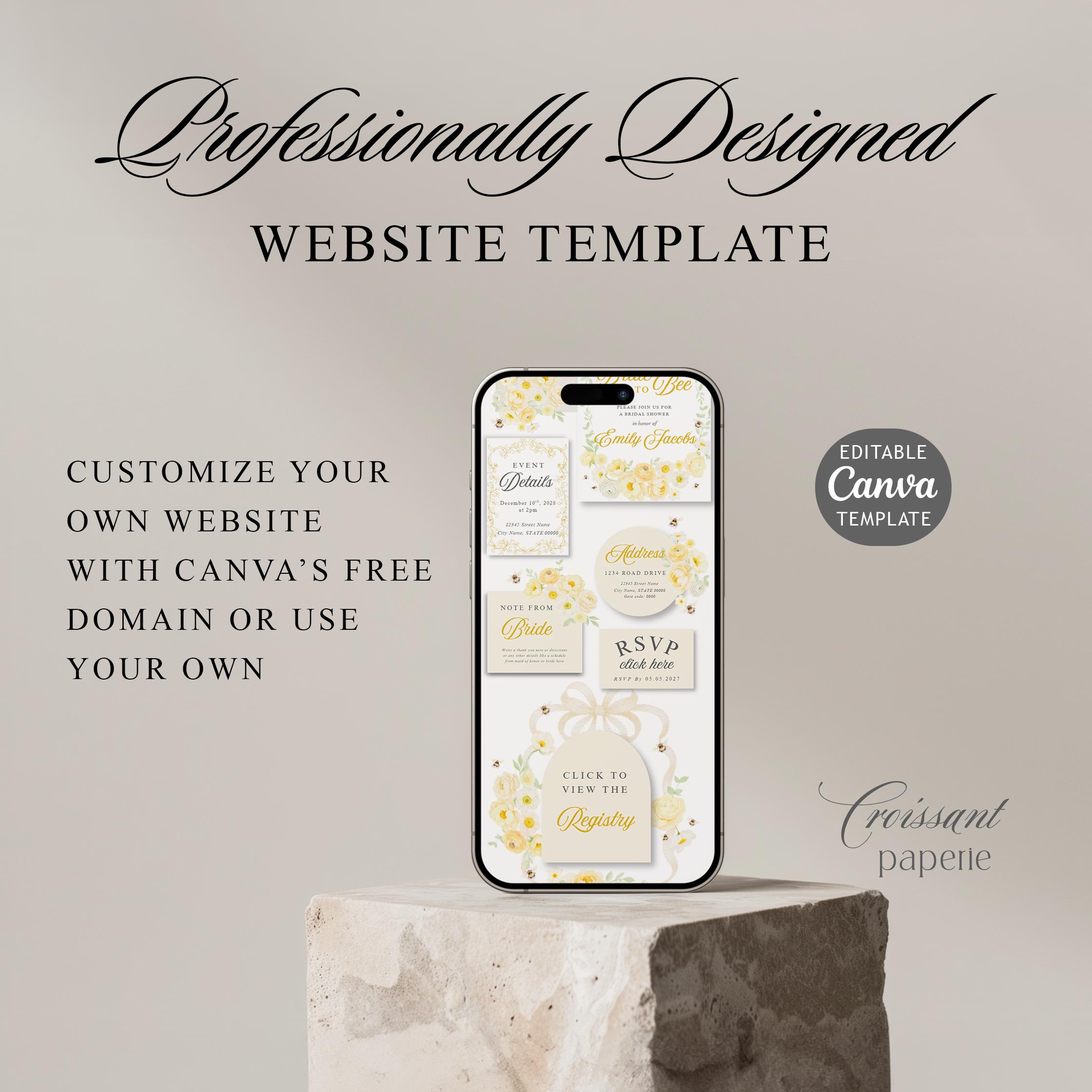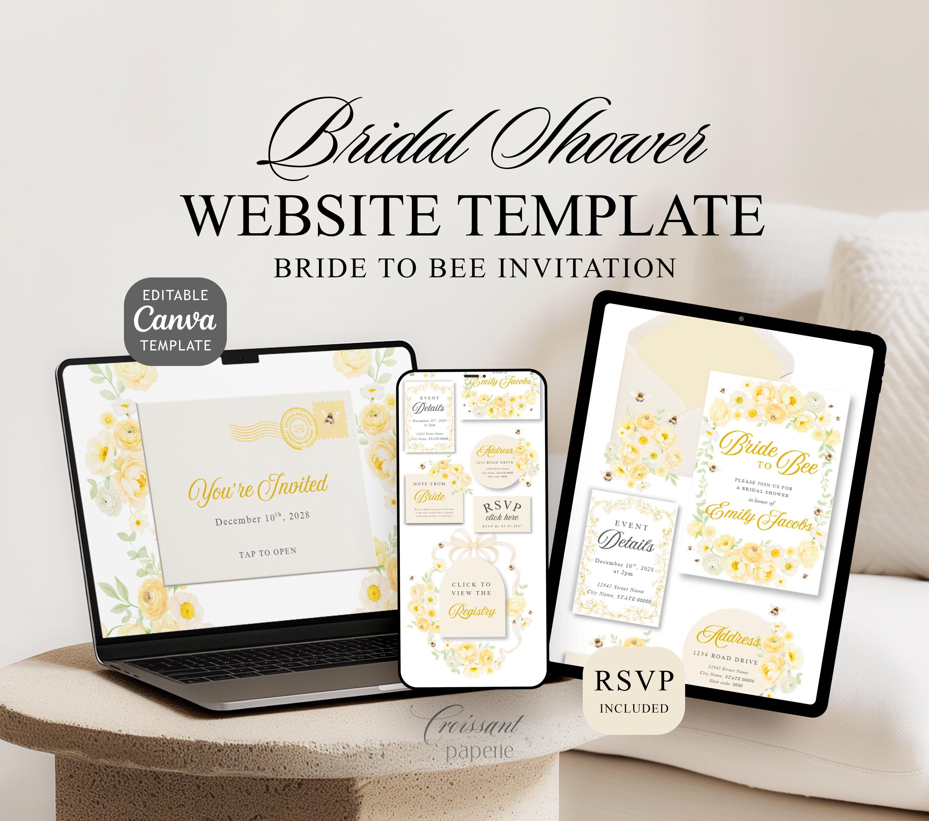 Bride to Bee Bridal Shower Website Template with RSVP Editable Canva Invite Regency Garden Bee Honey Bridal Shower Digital Invitation Floral