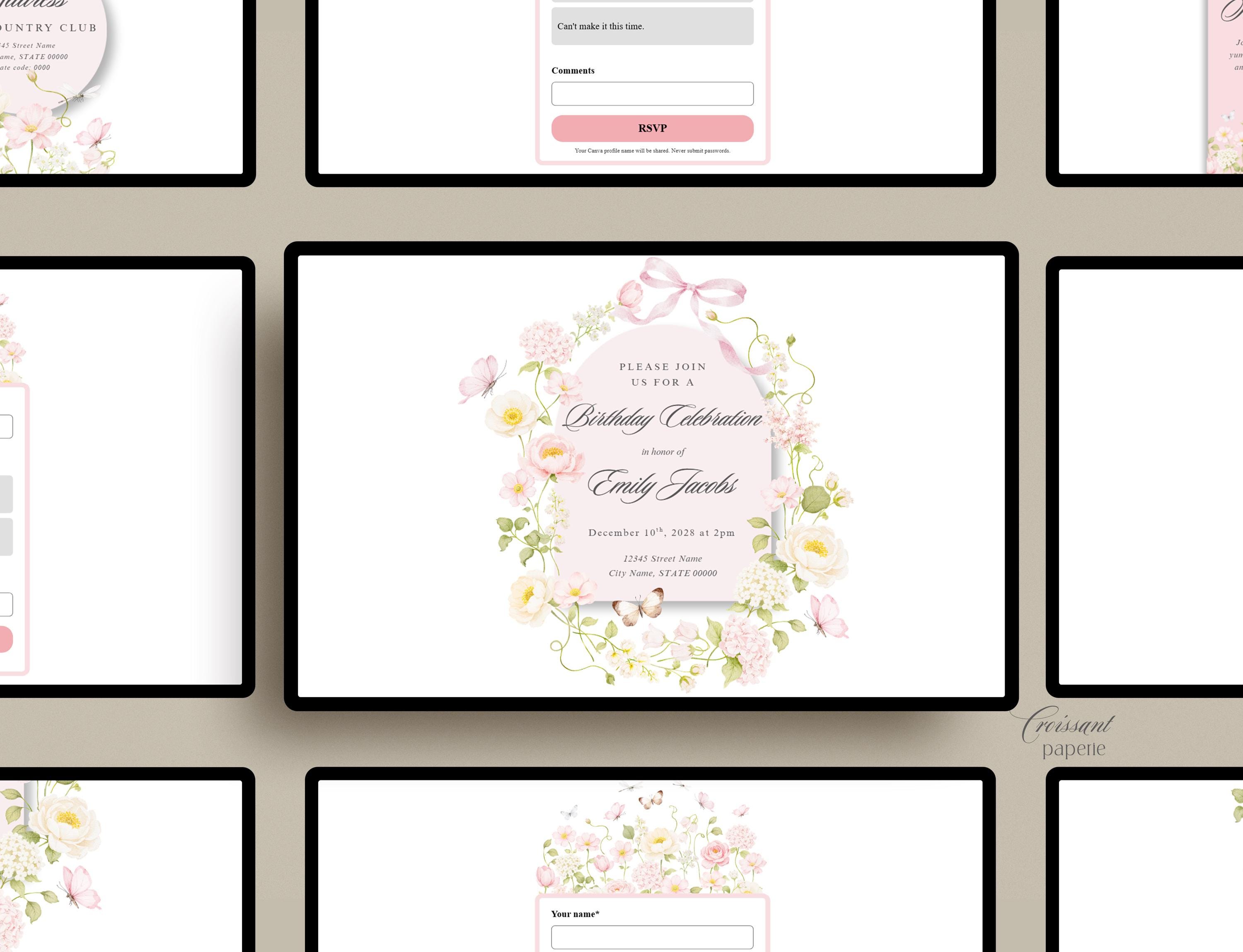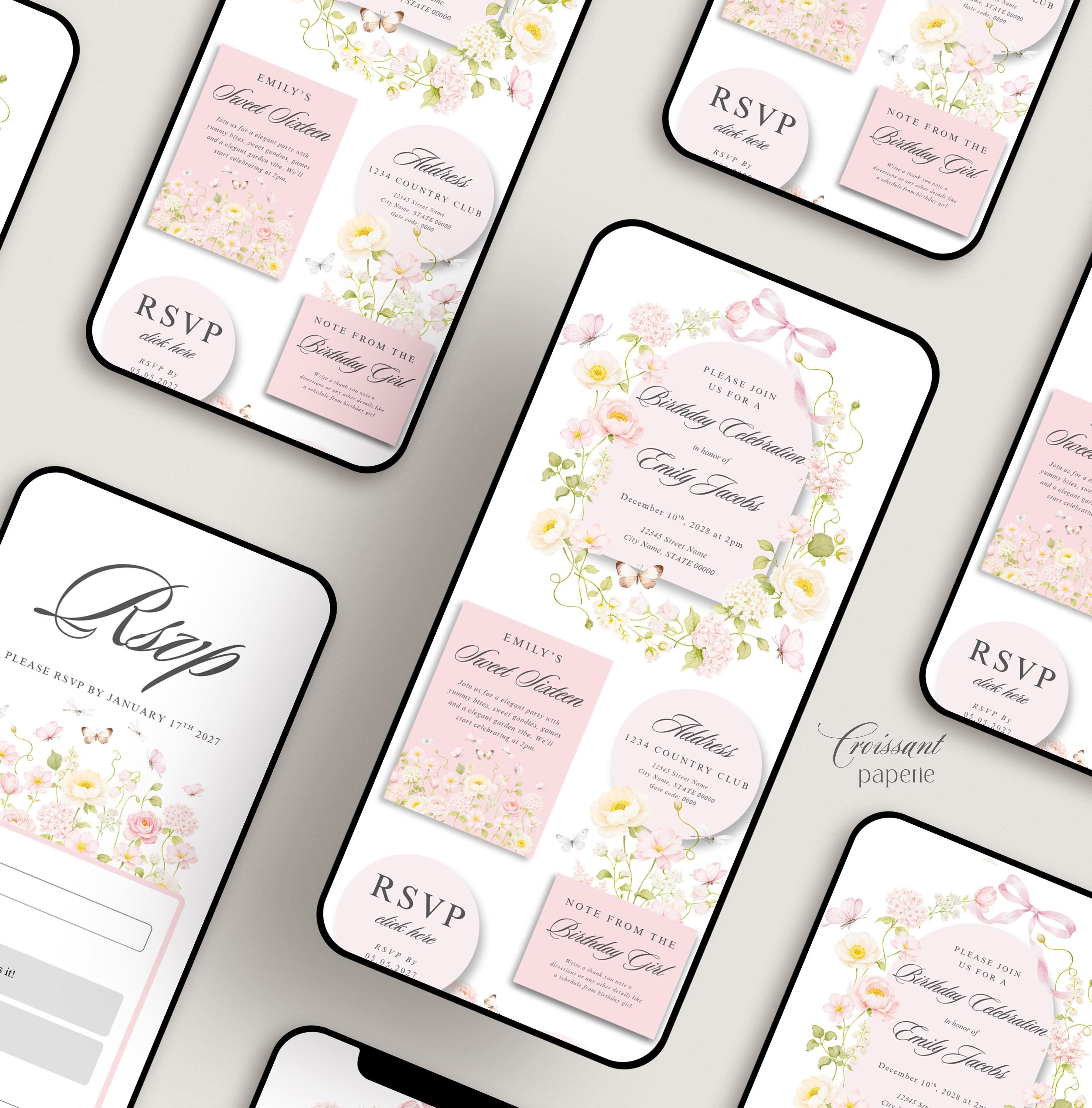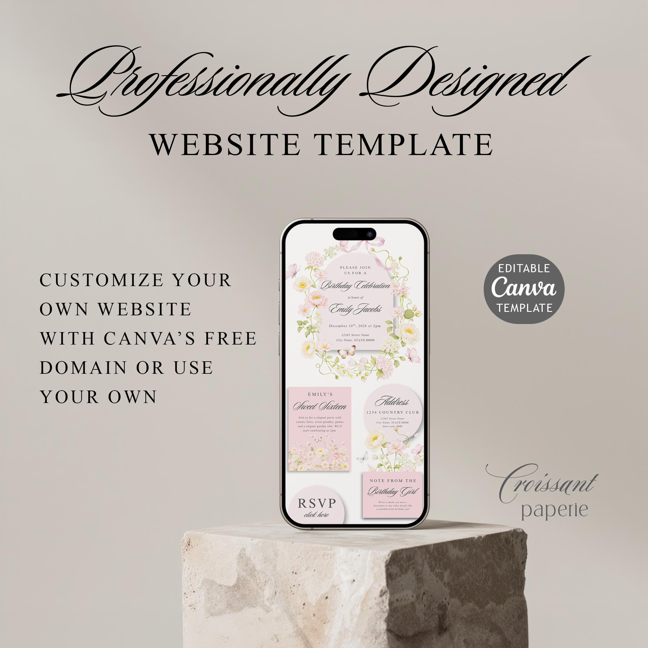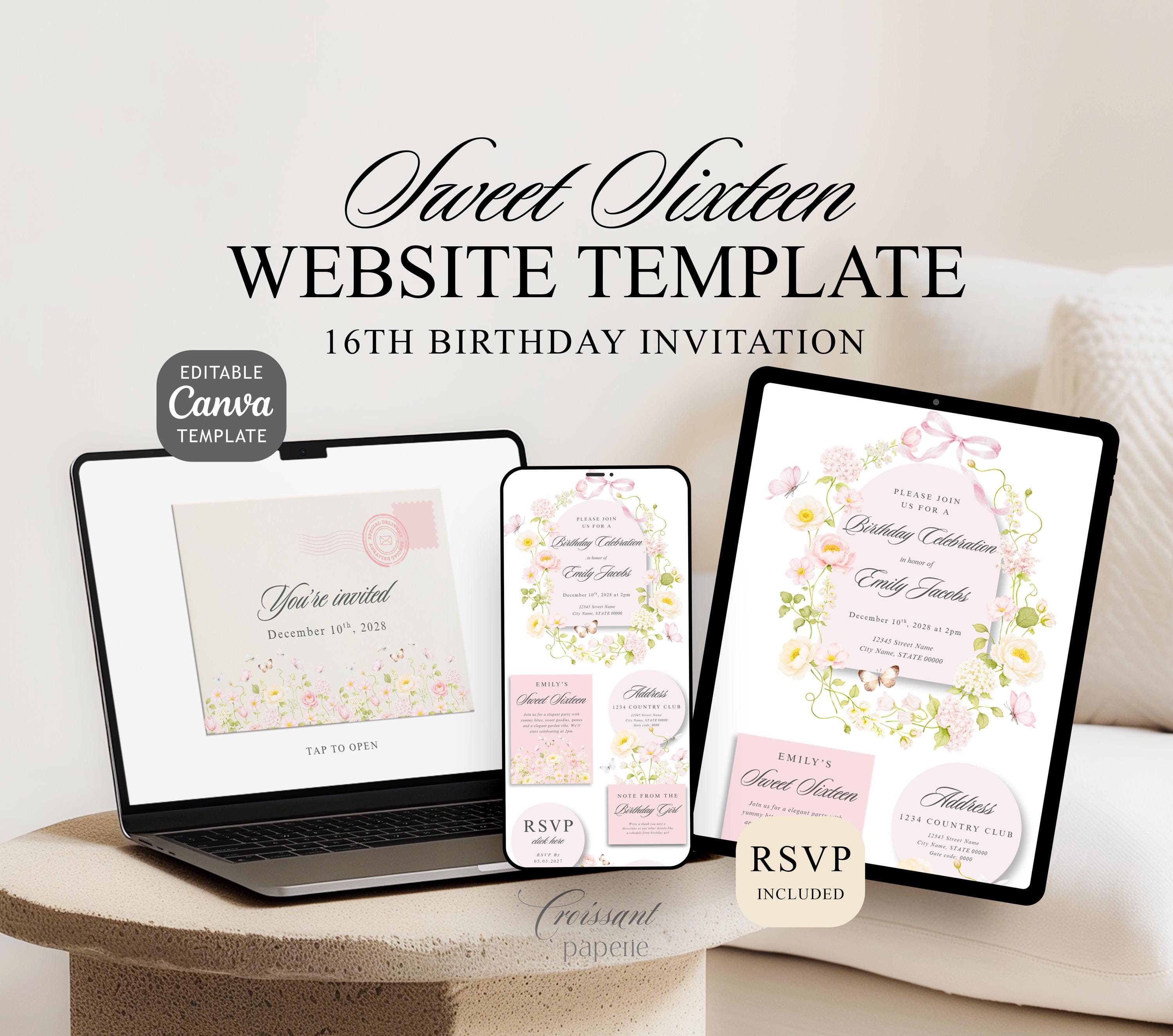 Wildflower Sweet Sixteen Digital Invitation Website Template with RSVP, Editable Canva Website, Floral Garden 16th 15th Quinceañera Birthday