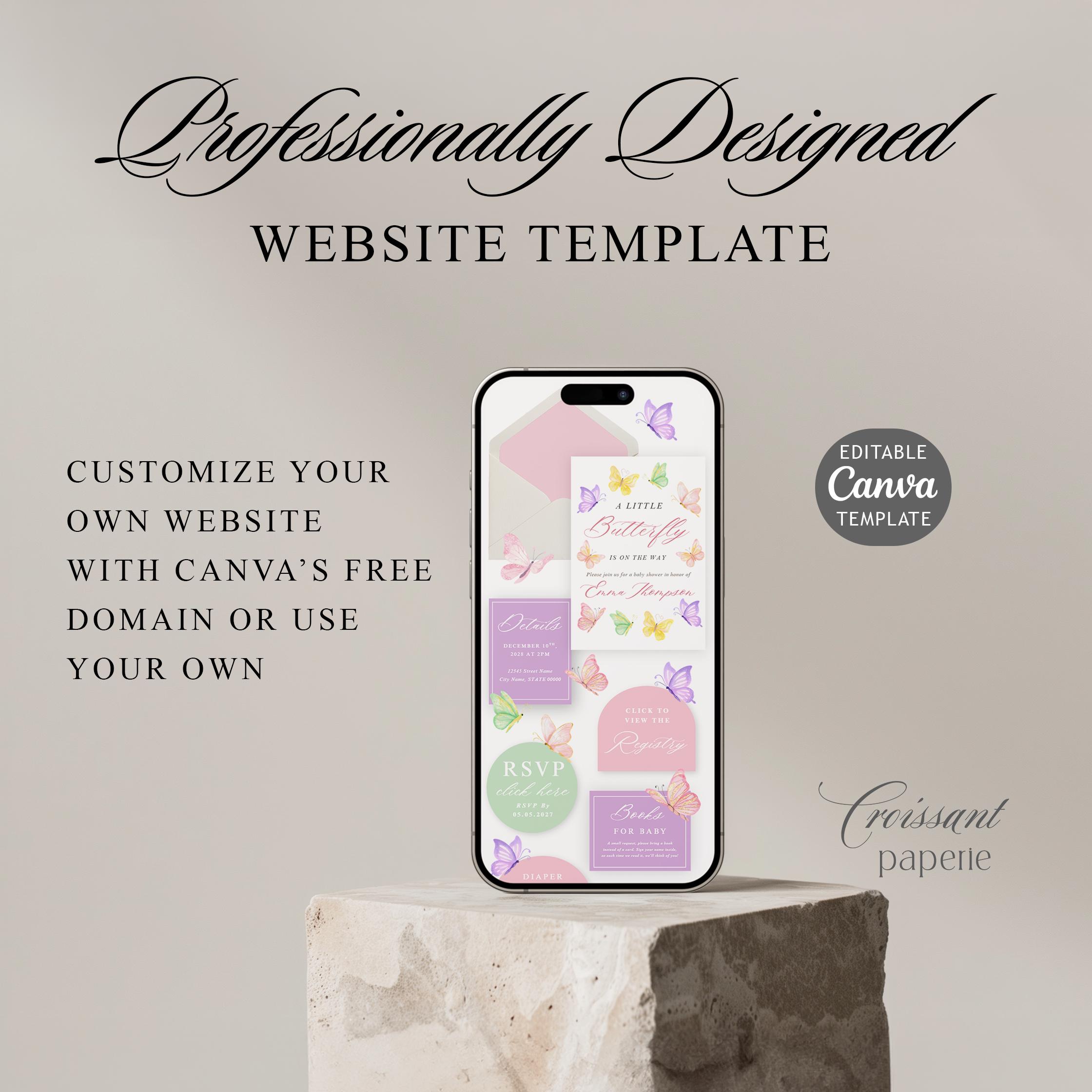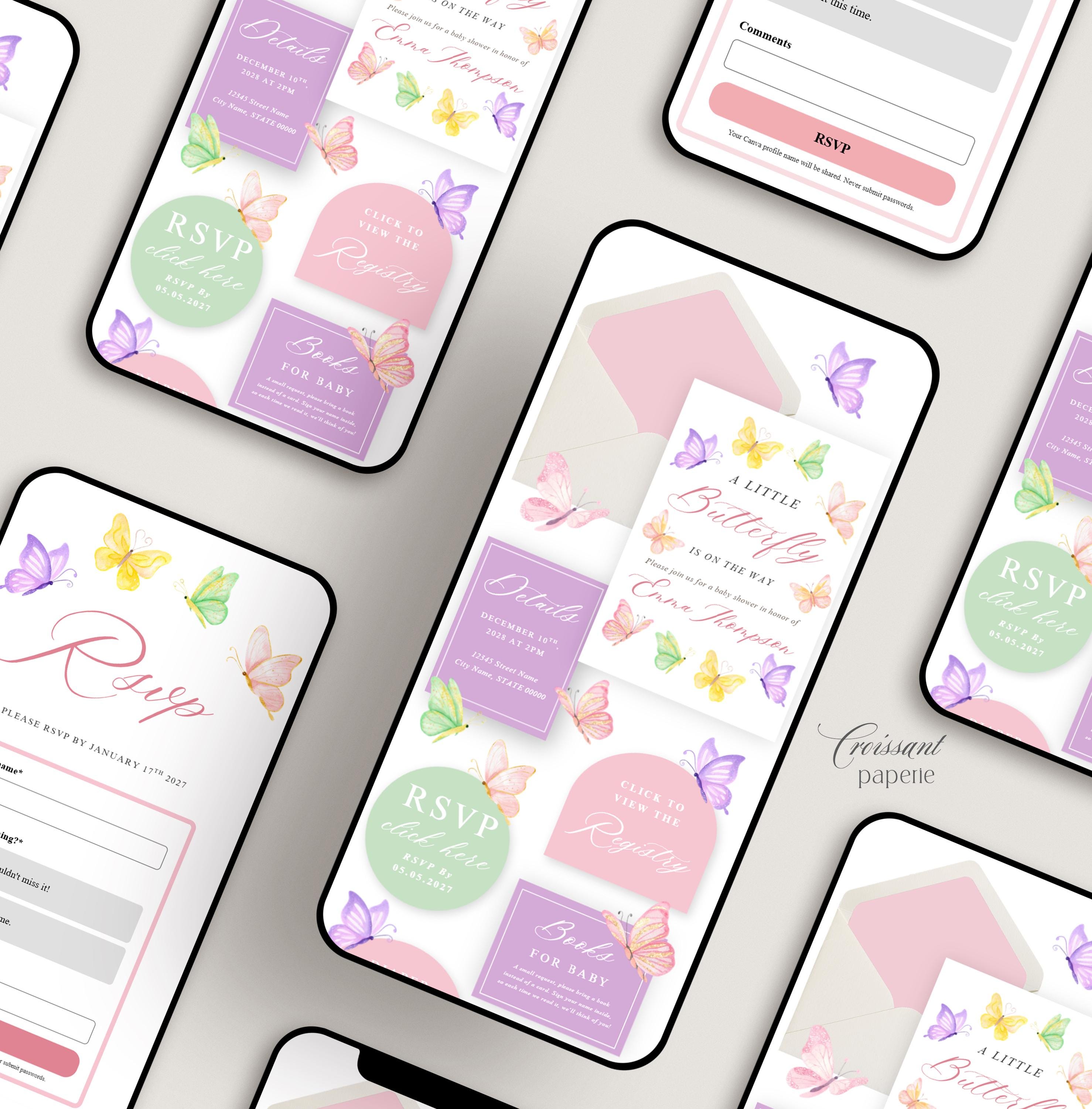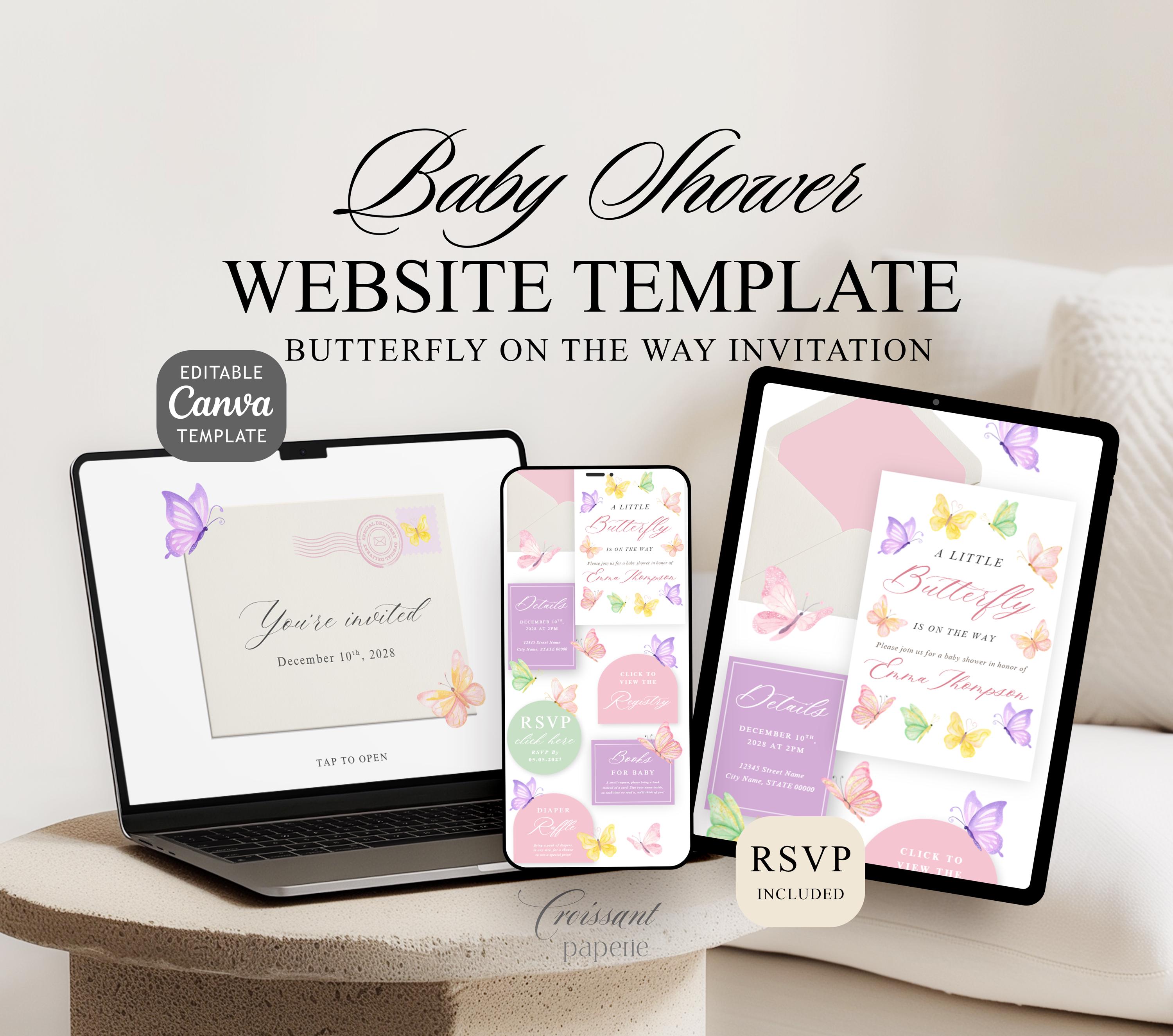 A Little Butterfly Is on the Way Baby Shower Website Template with RSVP, Digital Invitation Editable Canva Website, Butterfly Baby Shower Digital Invite, Pastel Baby Shower