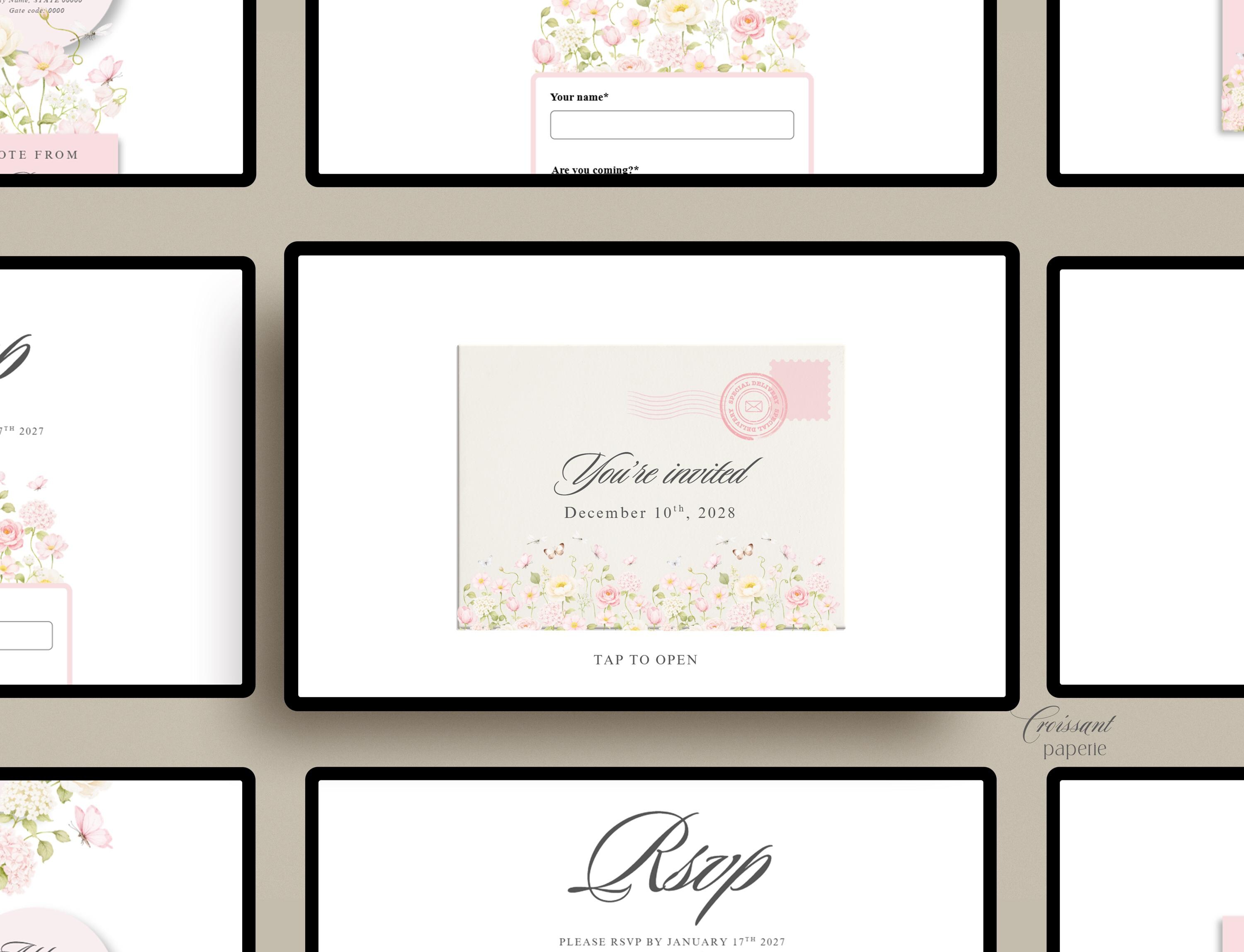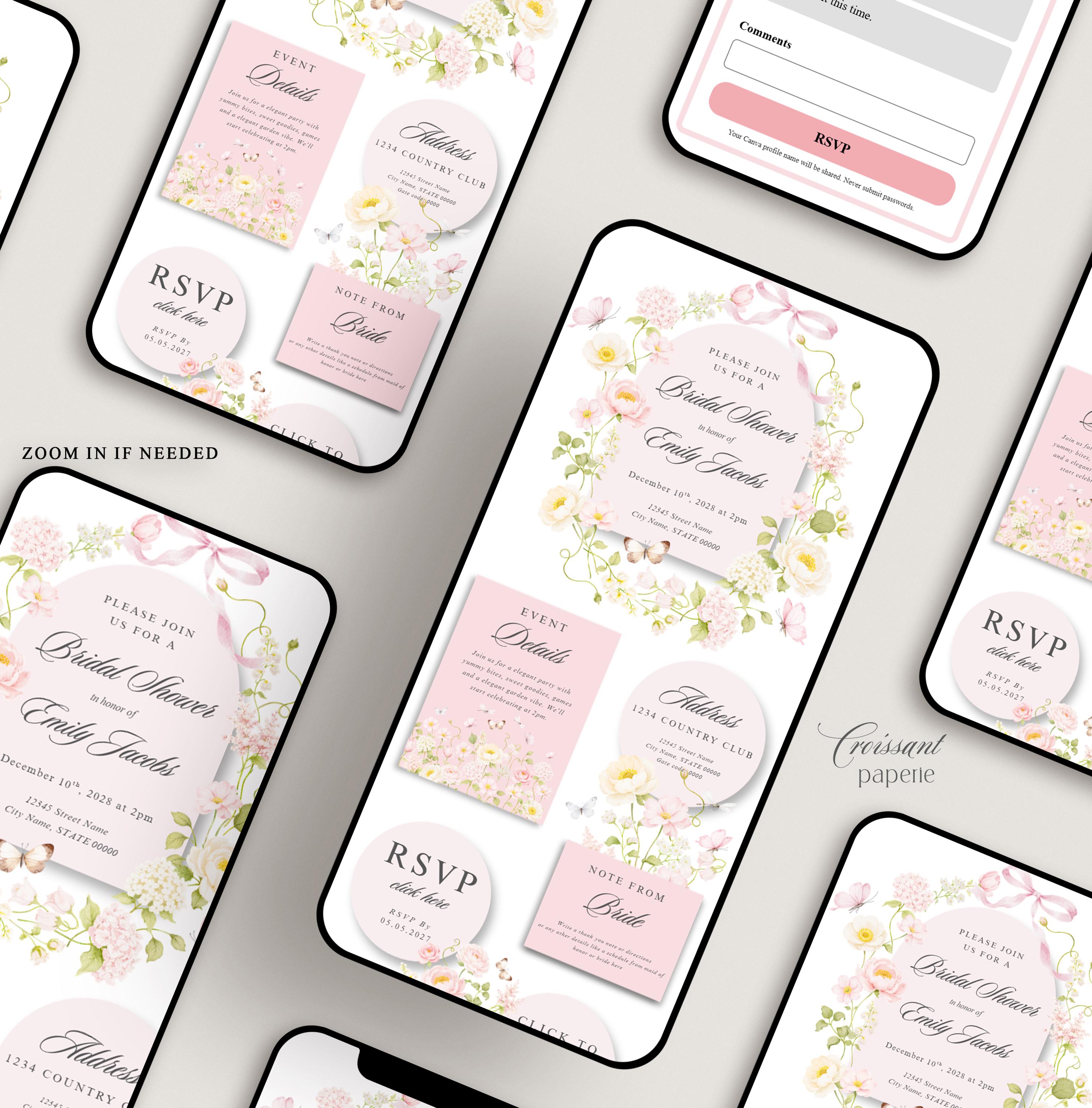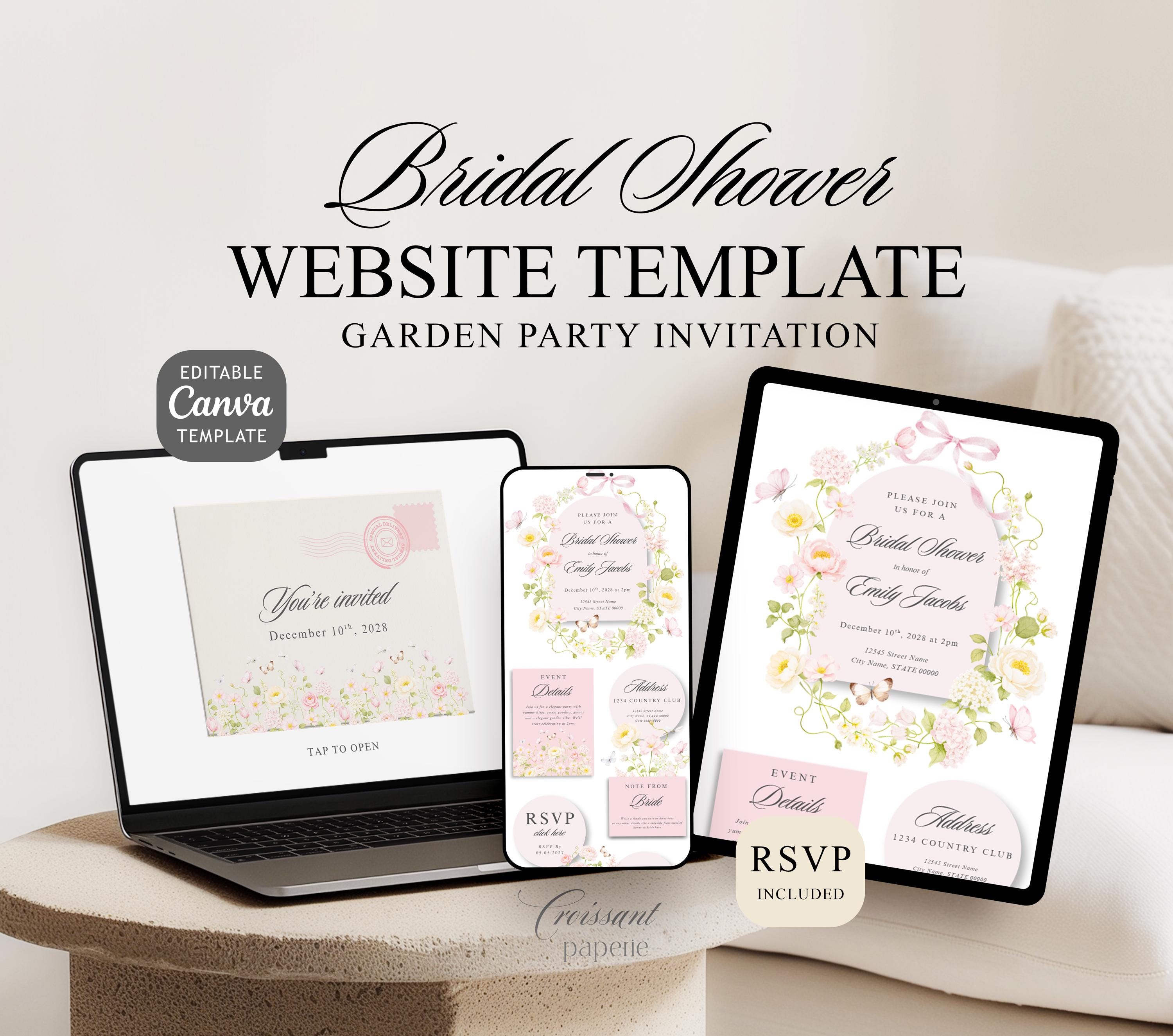 Garden Party Bridal Shower Website Template with RSVP, Editable Canva Website, Wildflower Bridal Shower Digital Invitation Floral Invite,