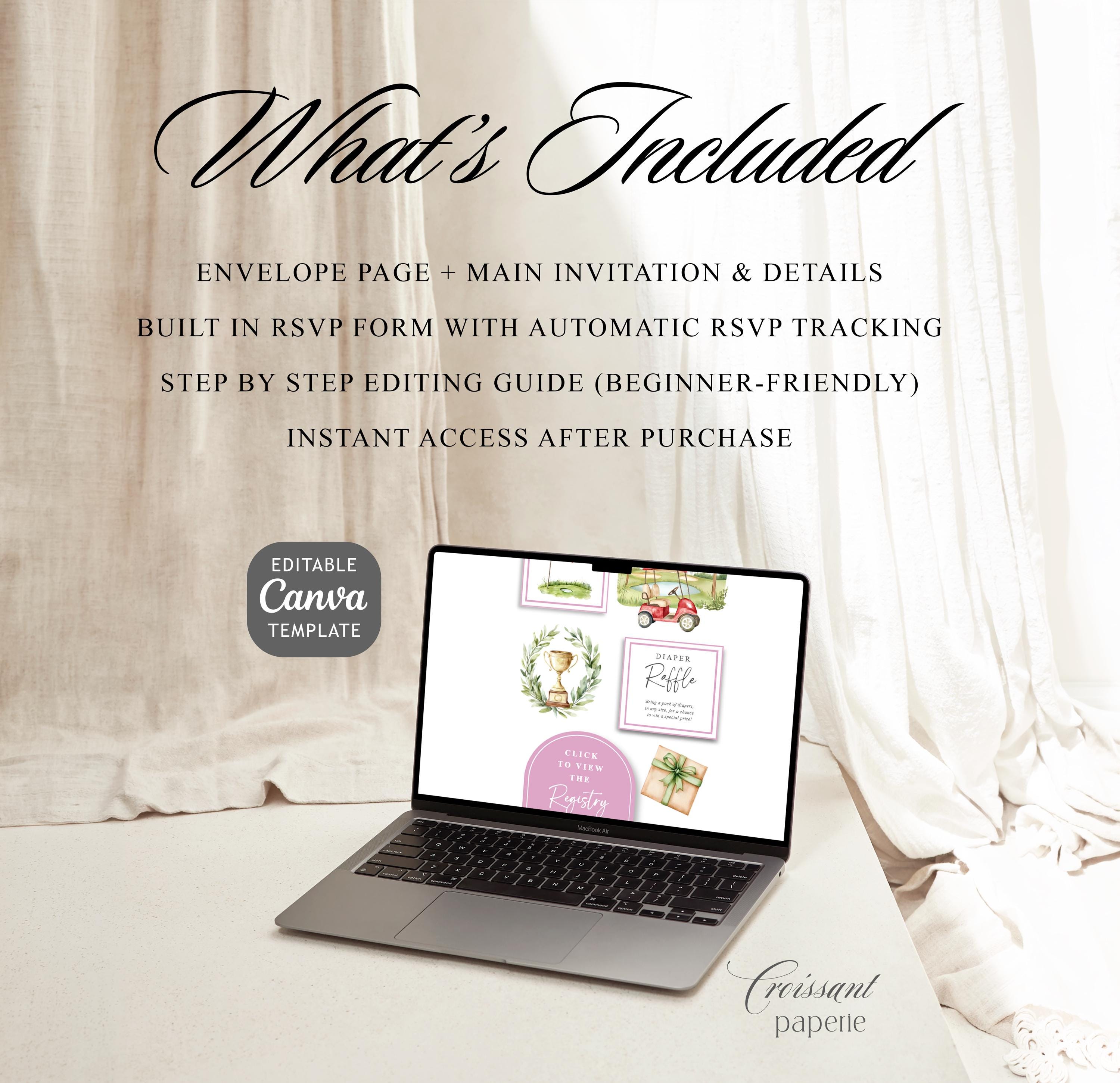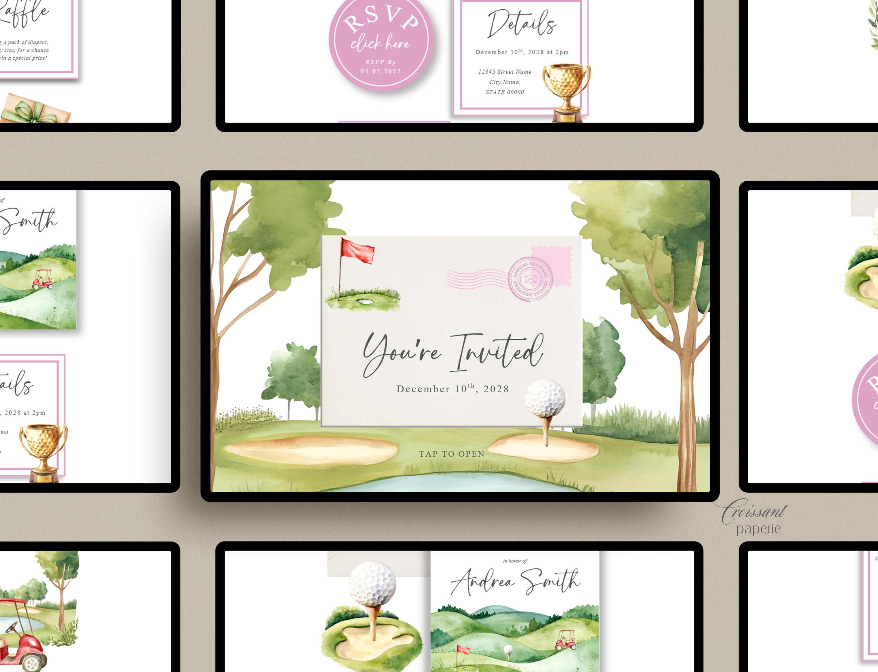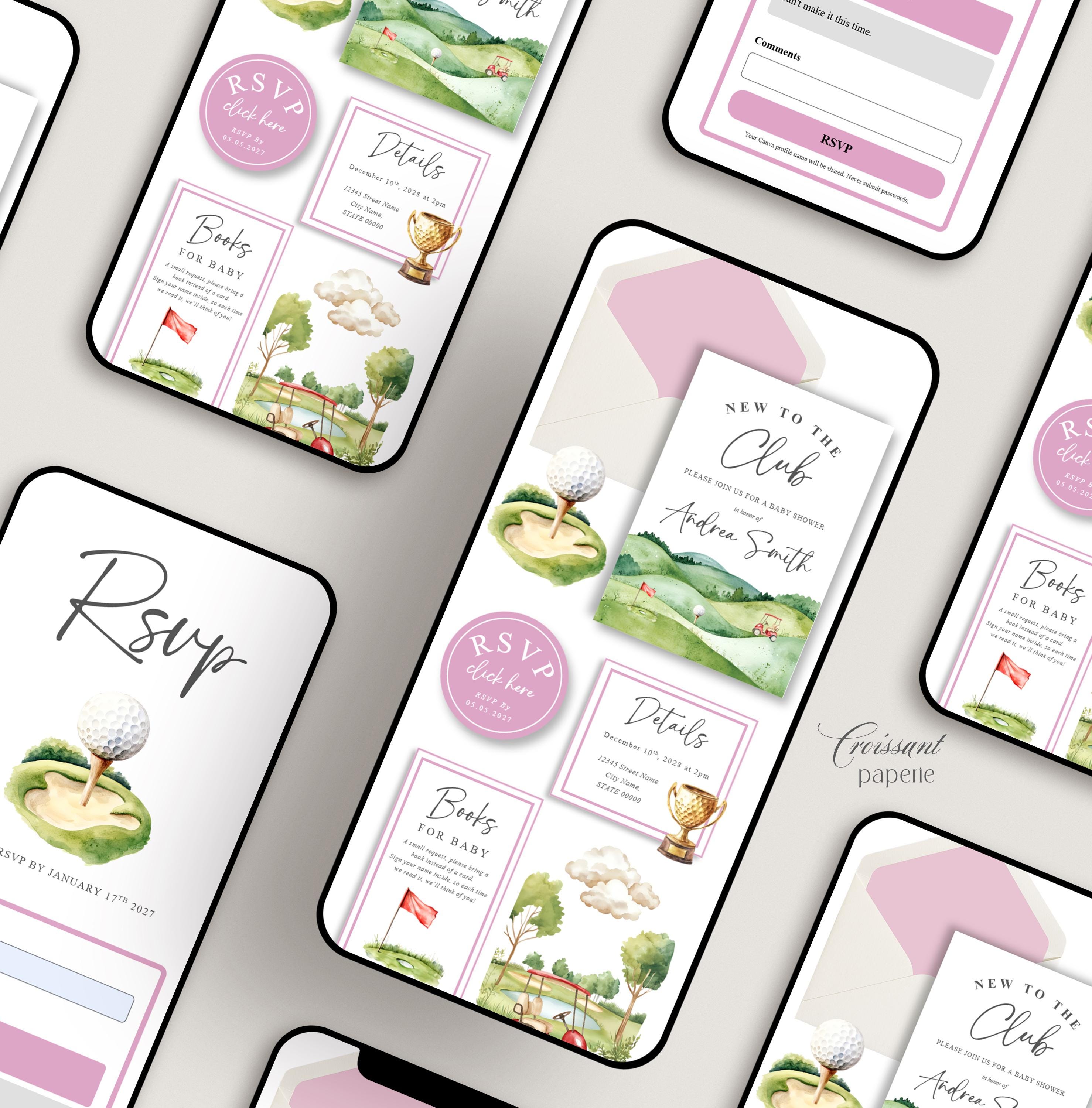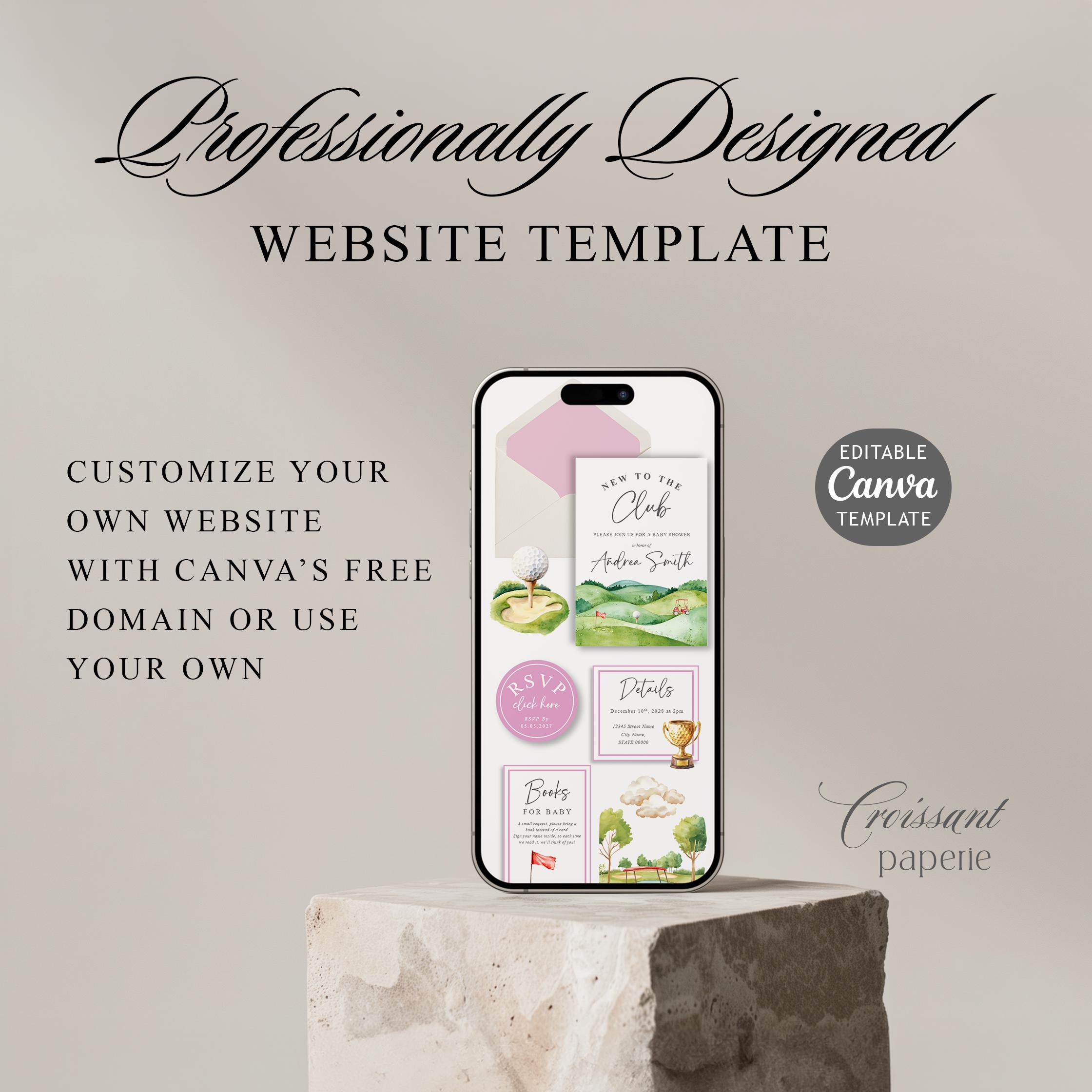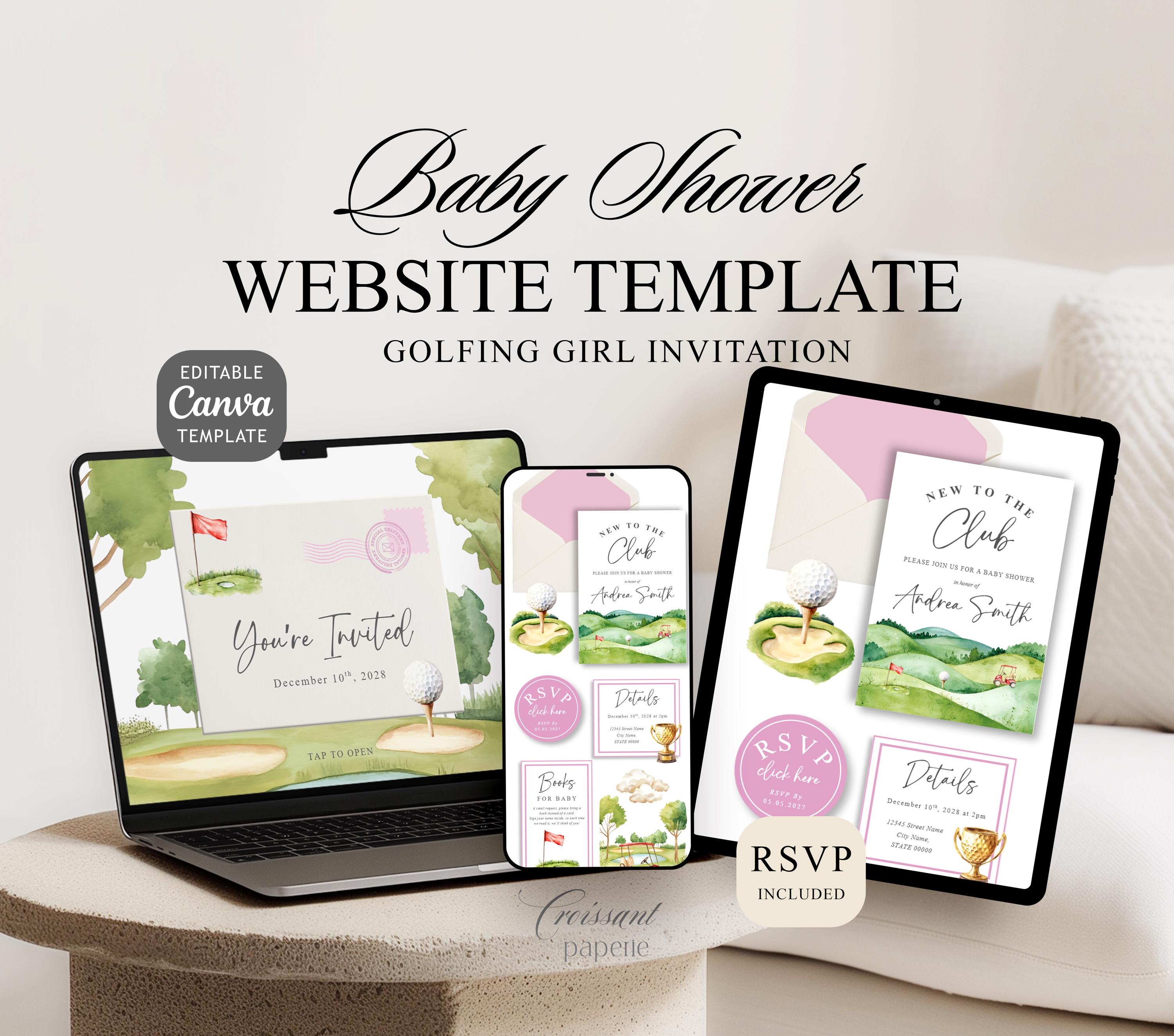Girl New to the Club Baby Shower Invitation Website Template RSVP Golfing Baby Shower Editable Canva Website Golf Girl Baby Shower Digital
